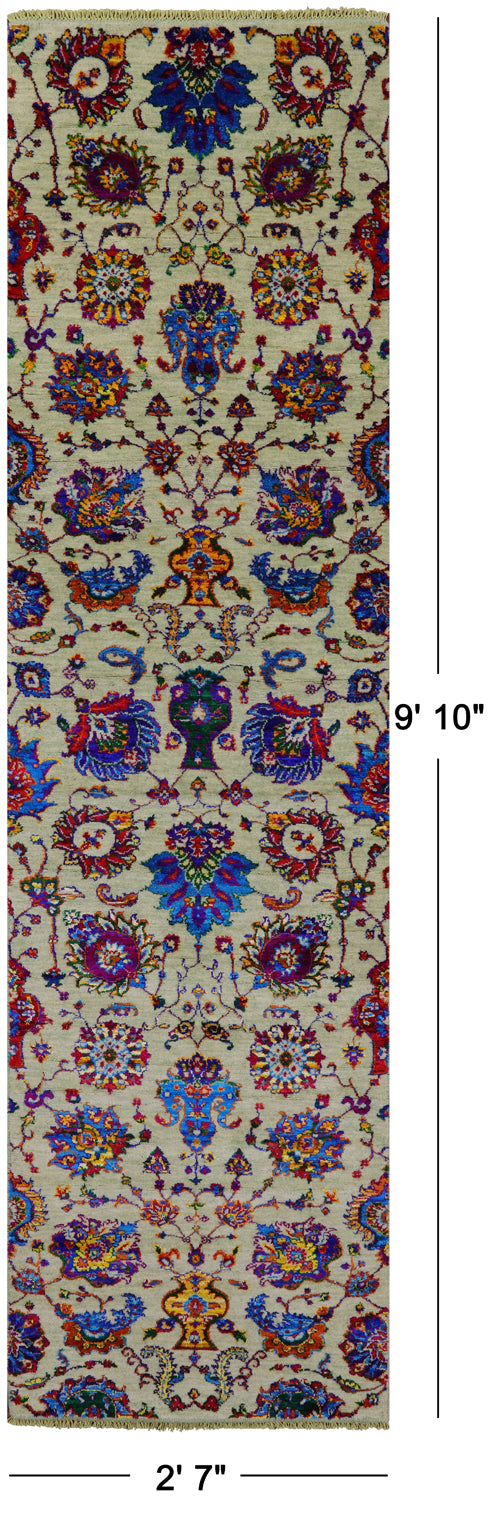 Green Persian Tabriz Hand Knotted Wool & Silk Runner Rug - 2' 7" X 9' 10"