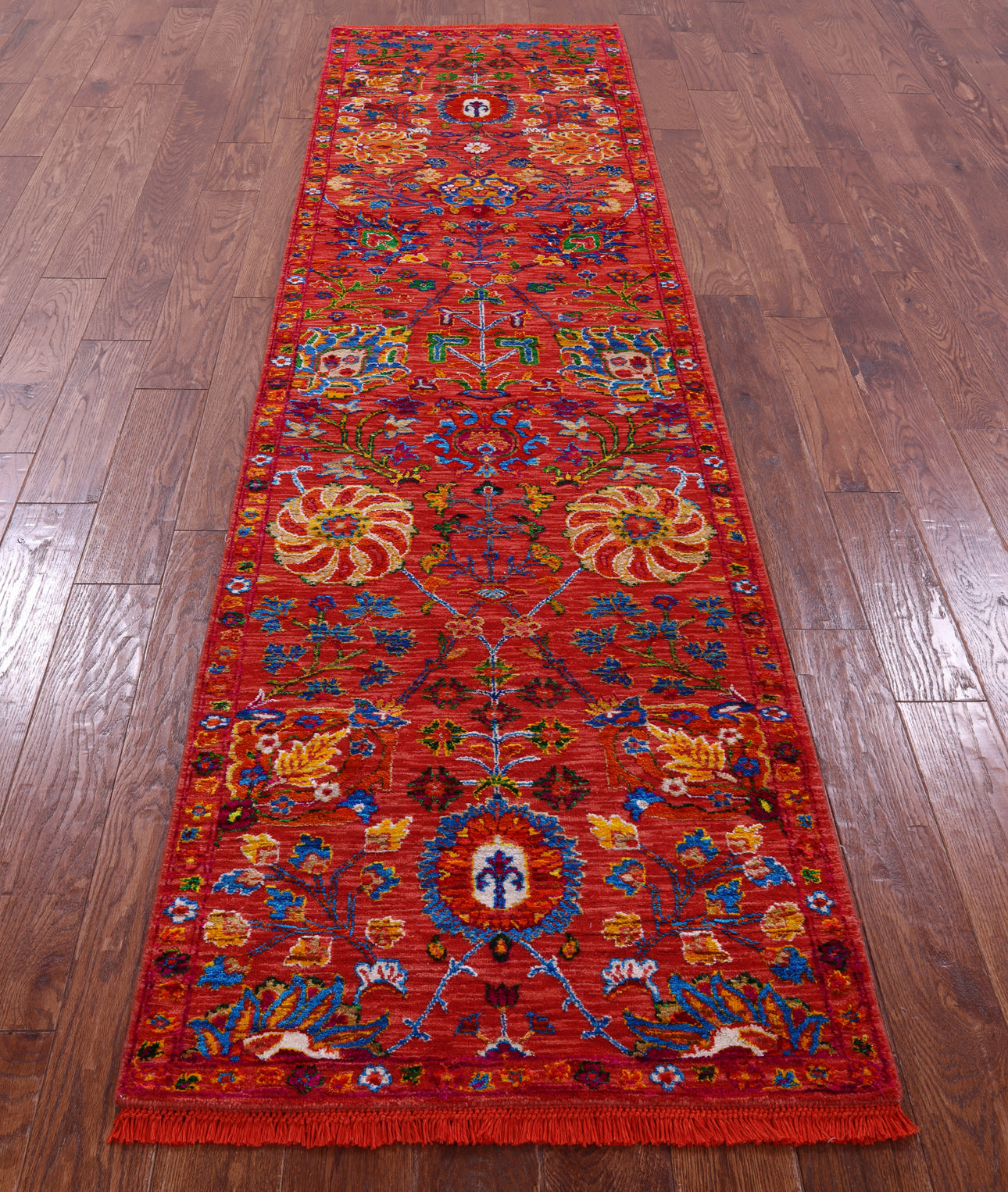 Orange Persian Tabriz Hand Knotted Wool & Silk Runner Rug - 2' 7" X 9' 11"