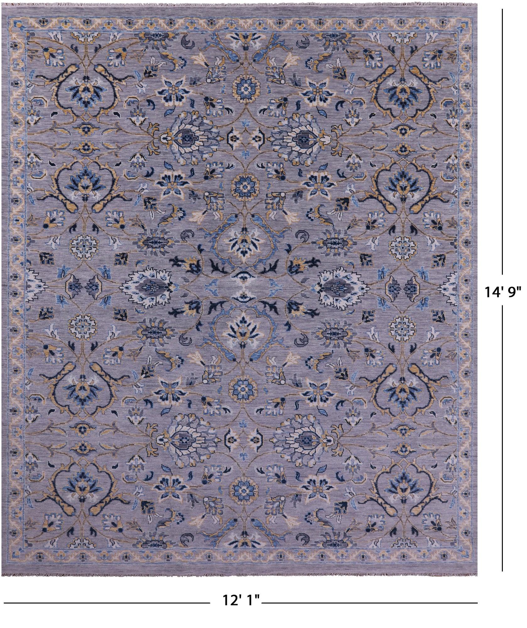Grey Persian Tabriz Handmade Wool Rug - 12' 1" X 14' 9"