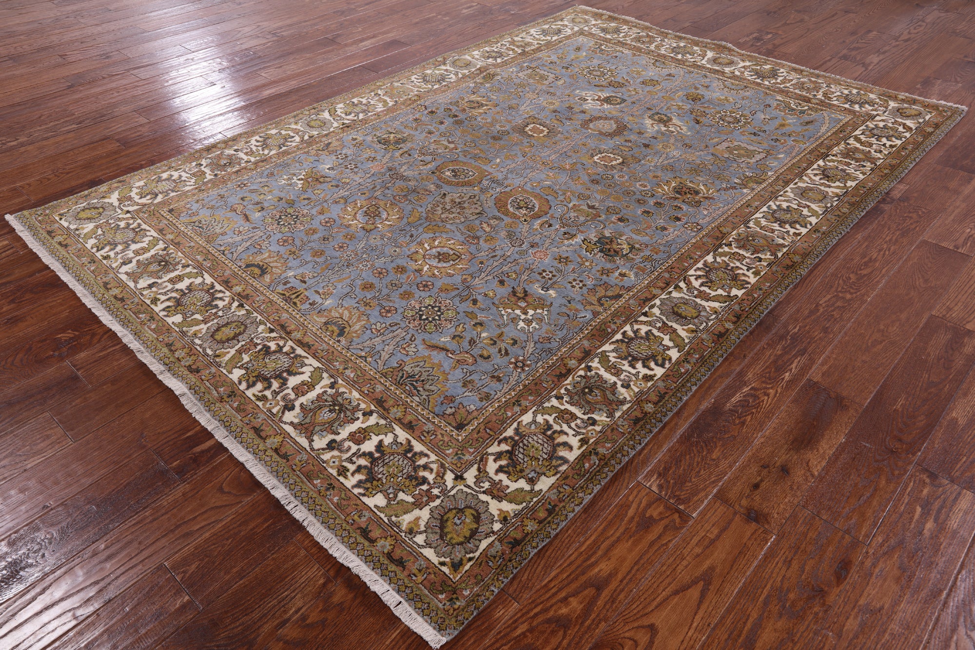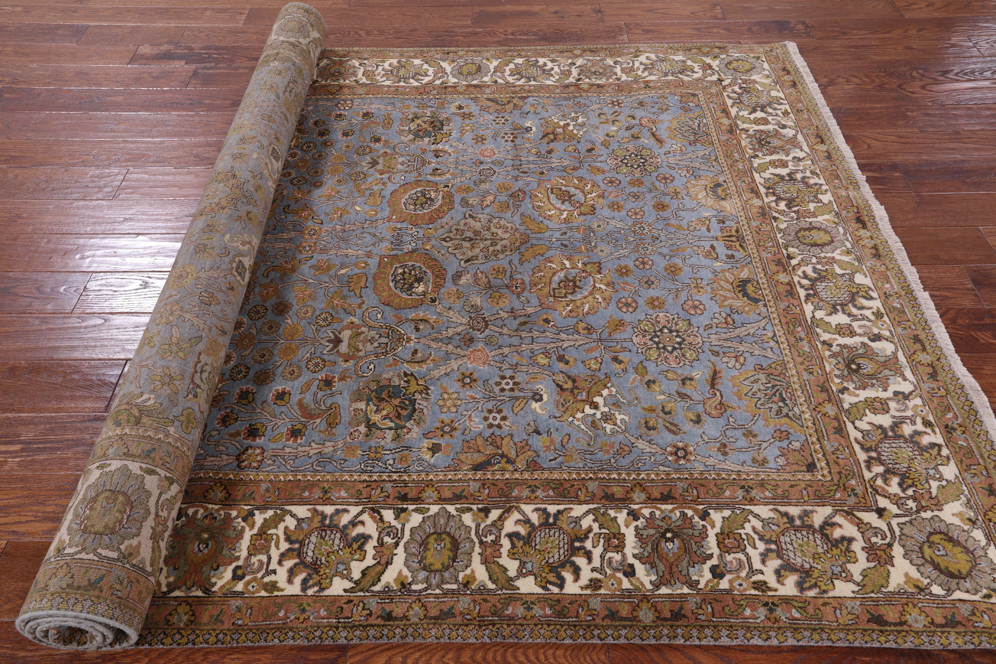 Tabriz Rugs are the most diverse and innovative in Persia due to its high-quality. Tabriz designs are hand-knotted with fine soft wool or silk, on a silk or cotton foundation, and may have either a thin silk, or wool pile. Their patterns consists of medallions surrounded by weeping willows, a cluster of trees and/or cypresses, arabesques (ornamental designs), and most popular, the four seasons used to depict the life of the Persian farmer. Their rich colors consist of red & blue with an ivory background, while newer Tabriz Rugs have softer colors such as green, blue and brown to correspond with modern interiors.