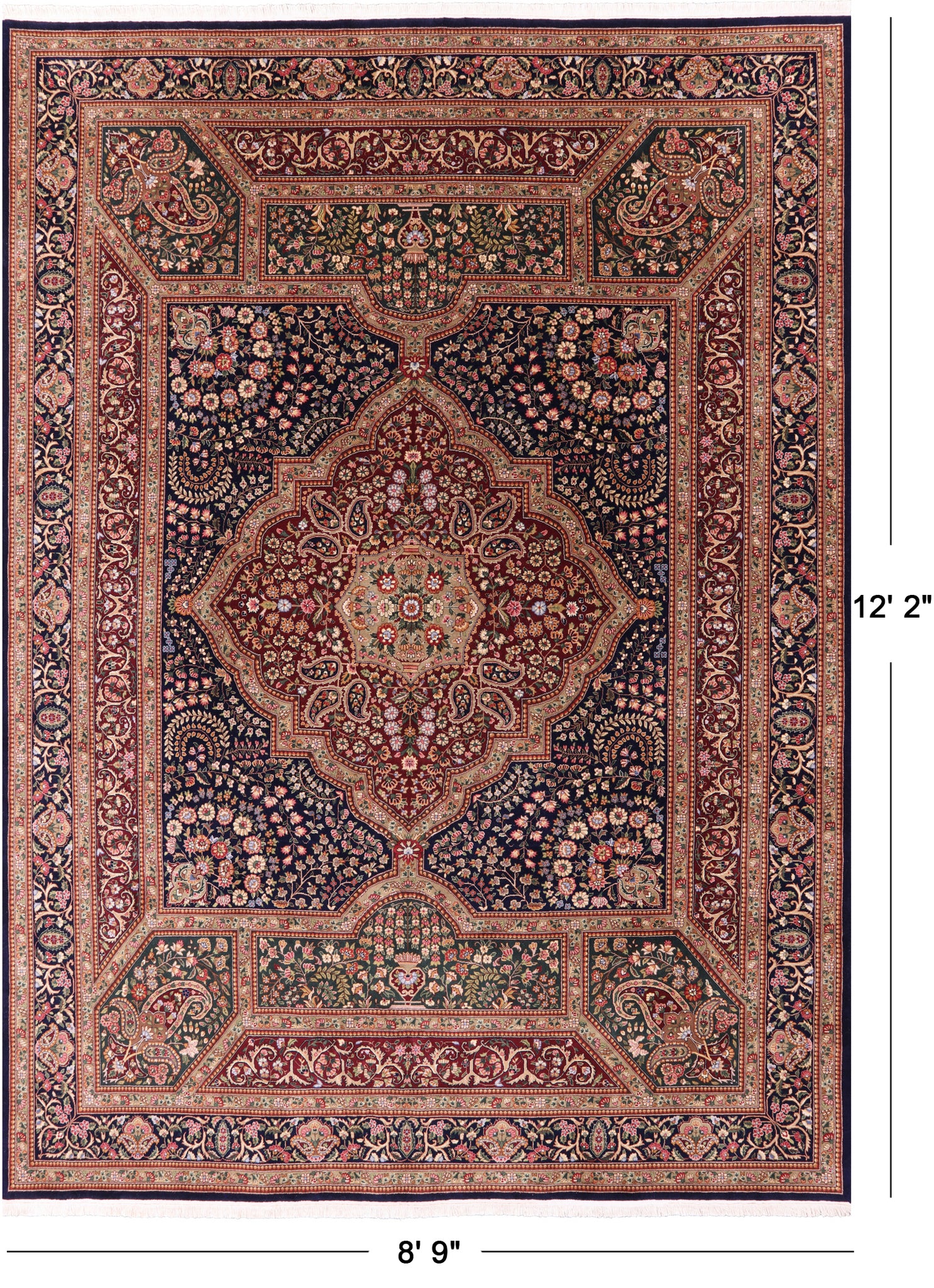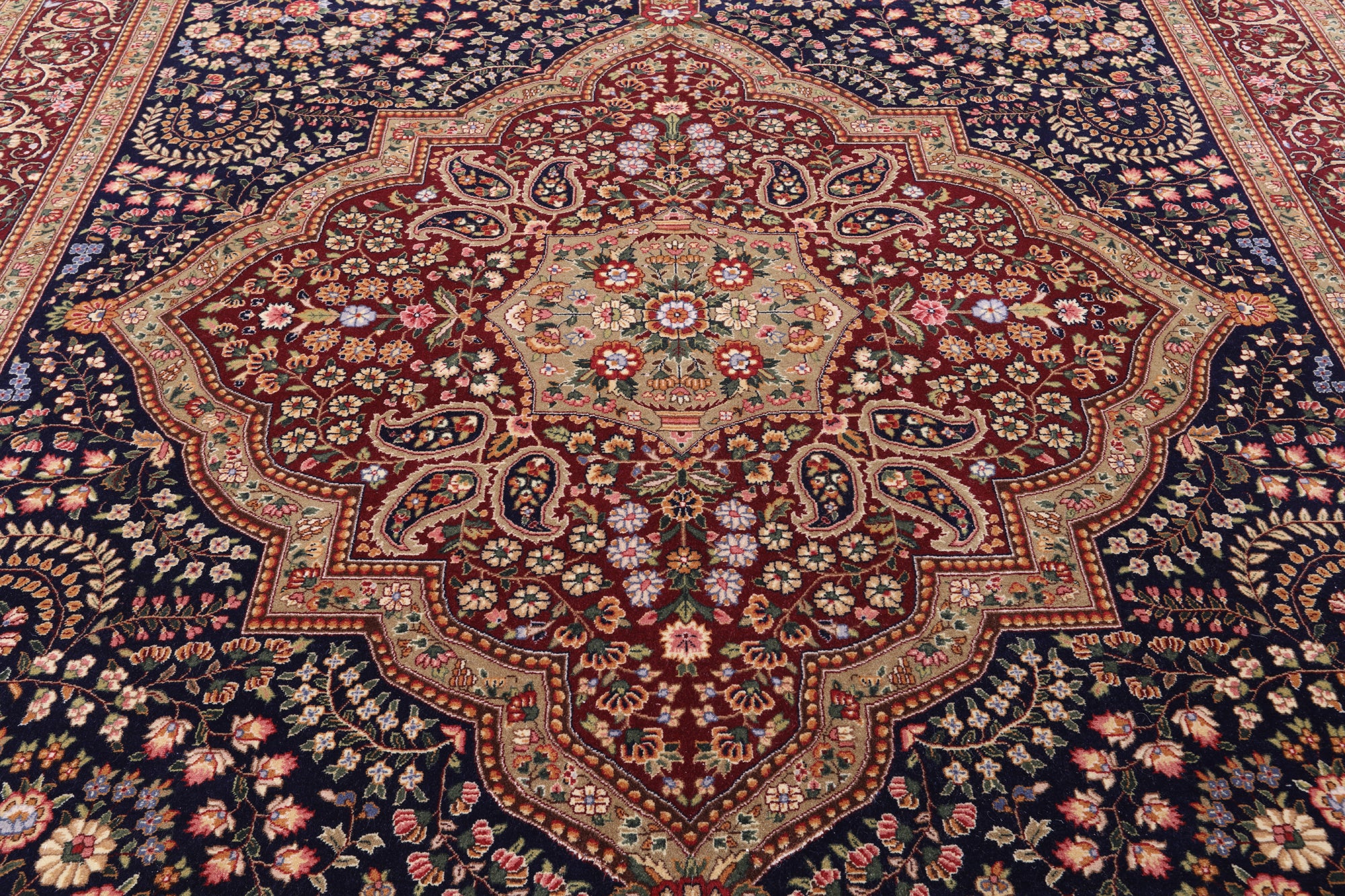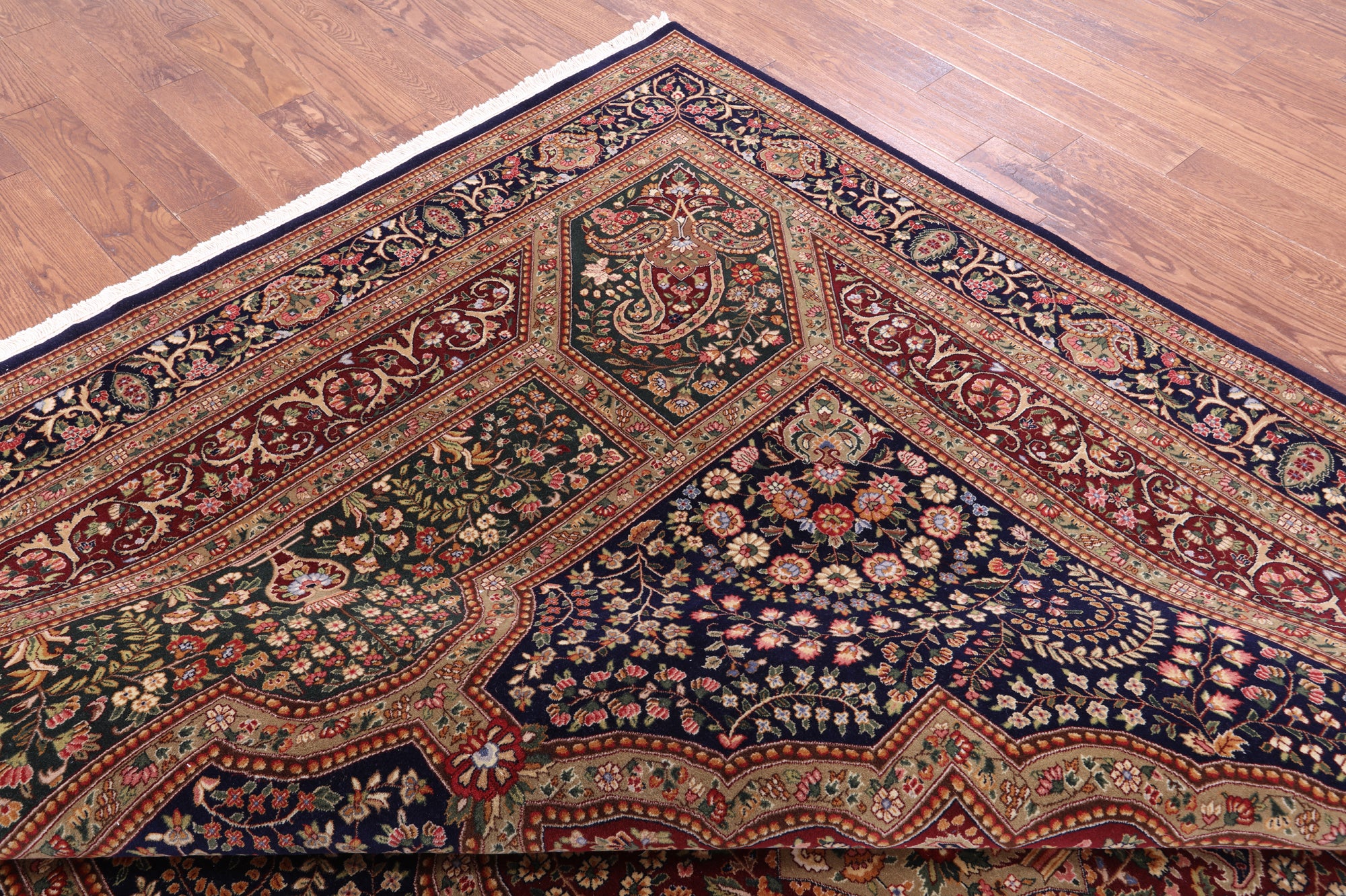 Blue Persian Tabriz Handmade Wool Rug - 8' 9" X 12' 2"