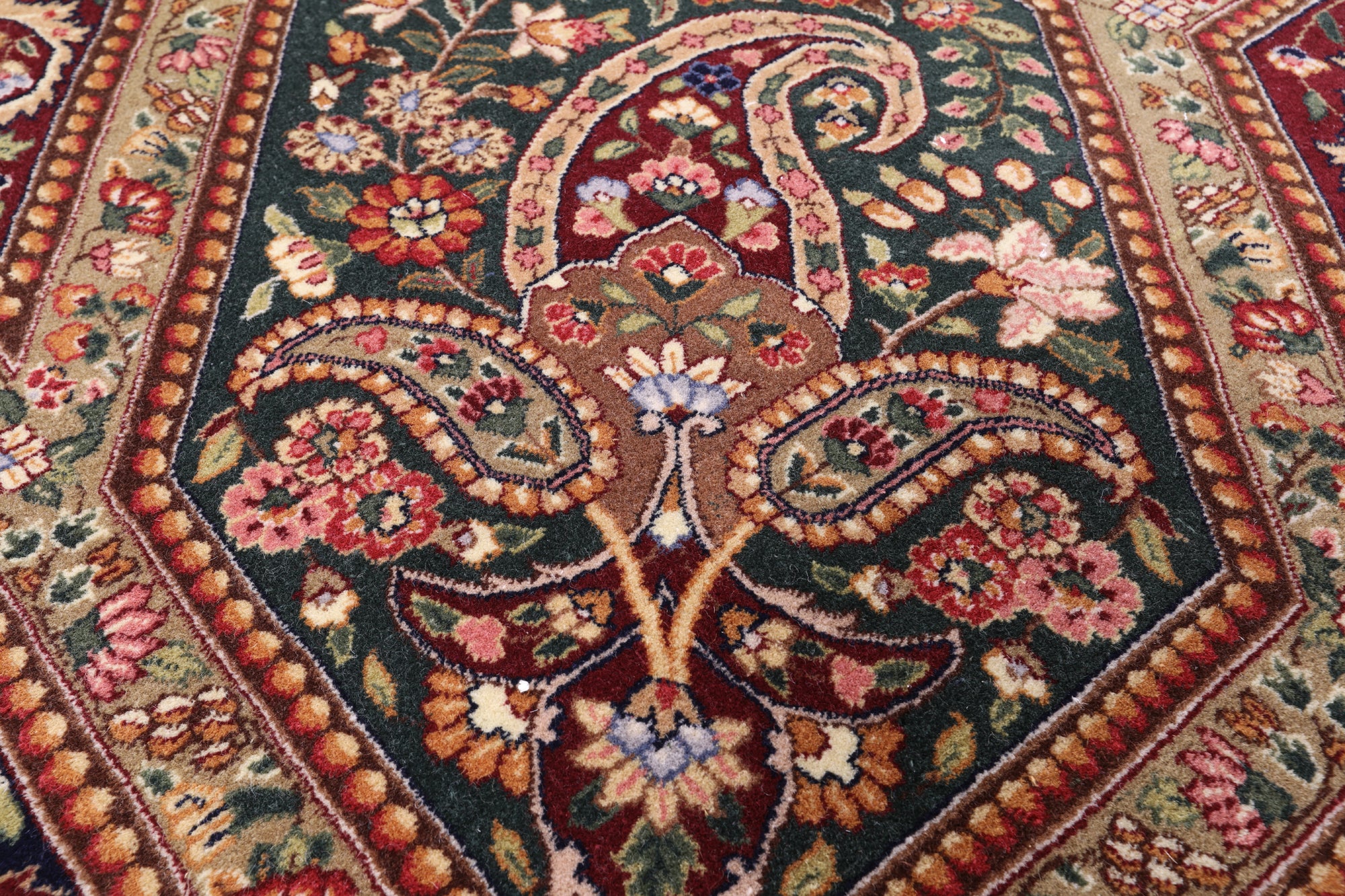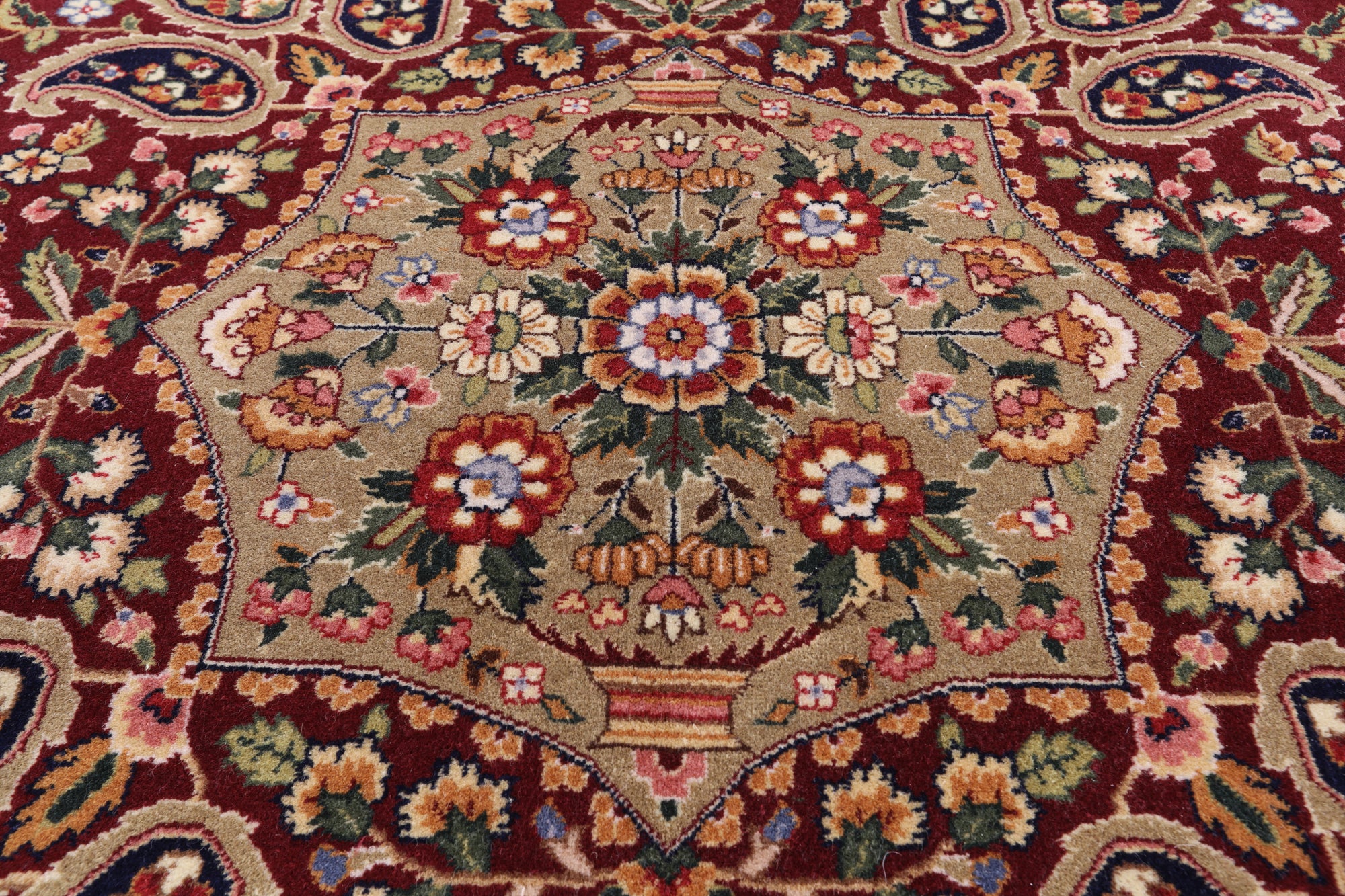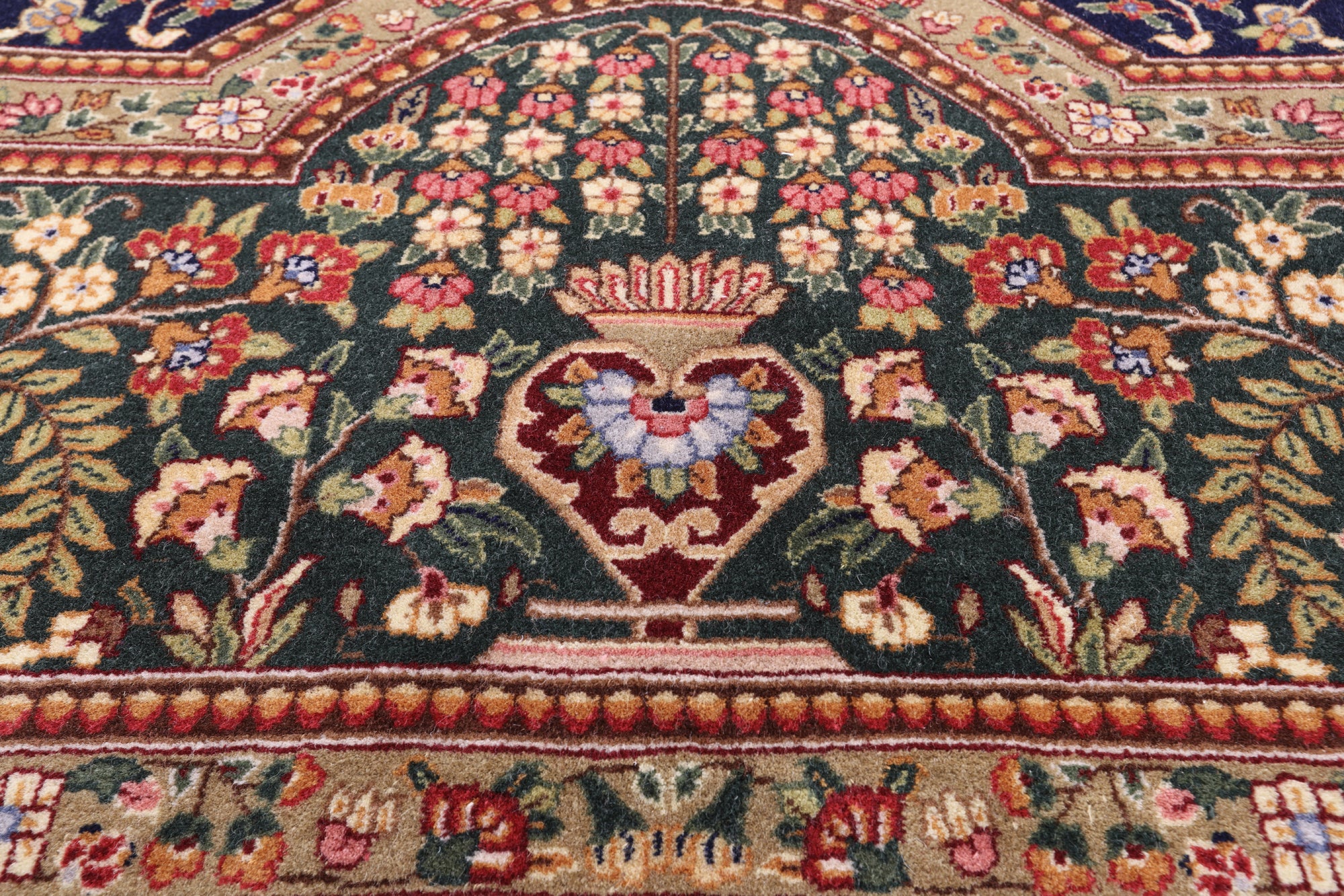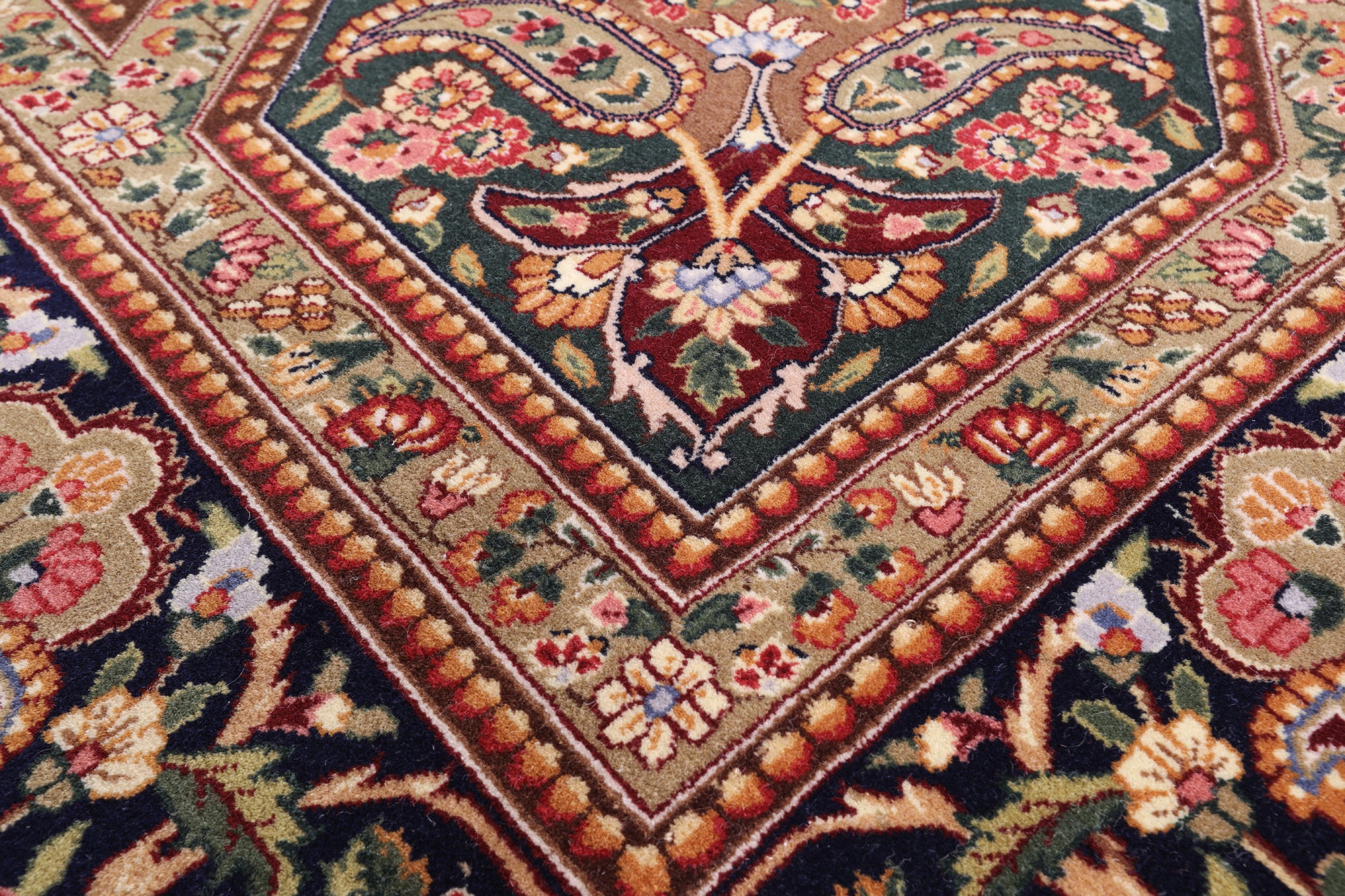 Tabriz Rugs are the most diverse and innovative in Persia due to its high-quality. Tabriz designs are hand-knotted with fine soft wool or silk, on a silk or cotton foundation, and may have either a thin silk, or wool pile. Their patterns consists of medallions surrounded by weeping willows, a cluster of trees and/or cypresses, arabesques (ornamental designs), and most popular, the four seasons used to depict the life of the Persian farmer. Their rich colors consist of red & blue with an ivory background, while newer Tabriz Rugs have softer colors such as green, blue and brown to correspond with modern interiors.