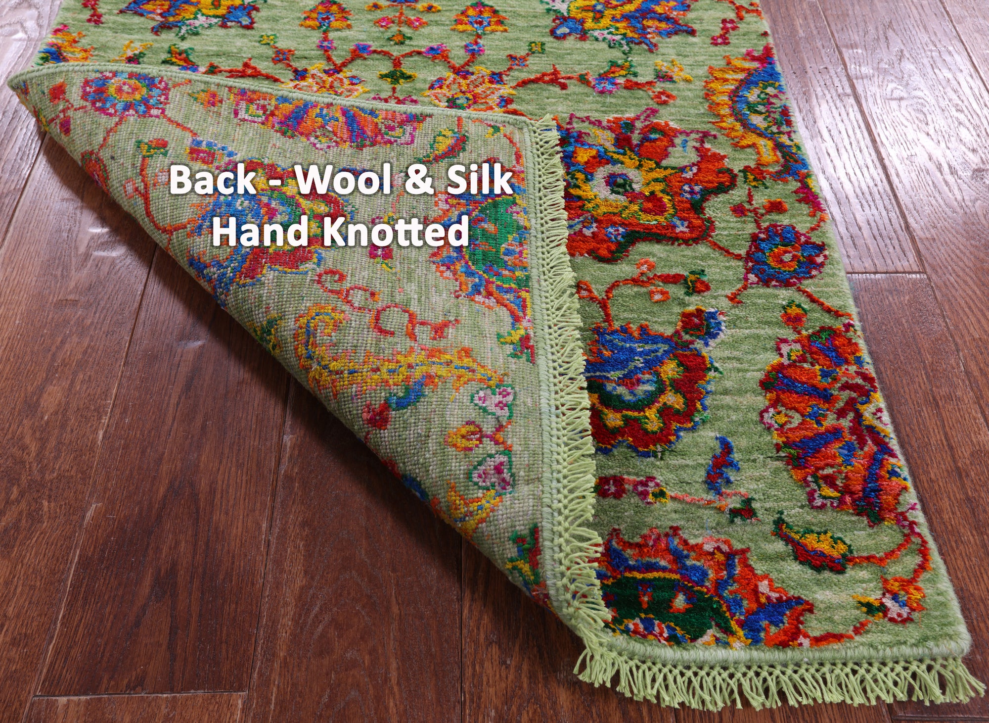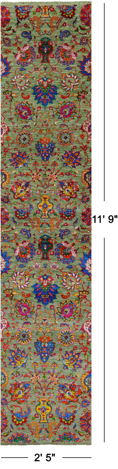 Green Persian Tabriz Handmade Wool & Silk Runner Rug - 2' 5" X 11' 9"
