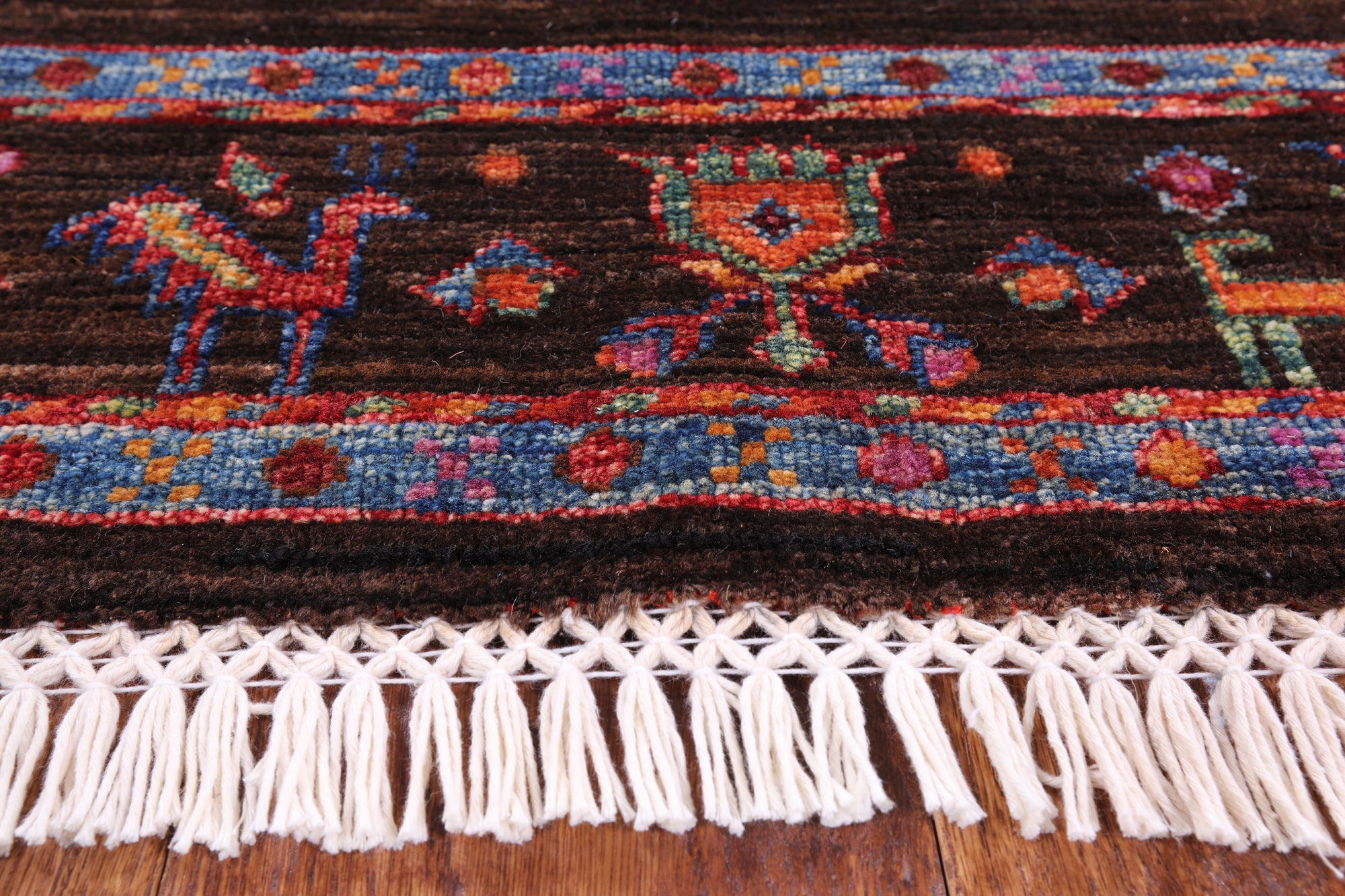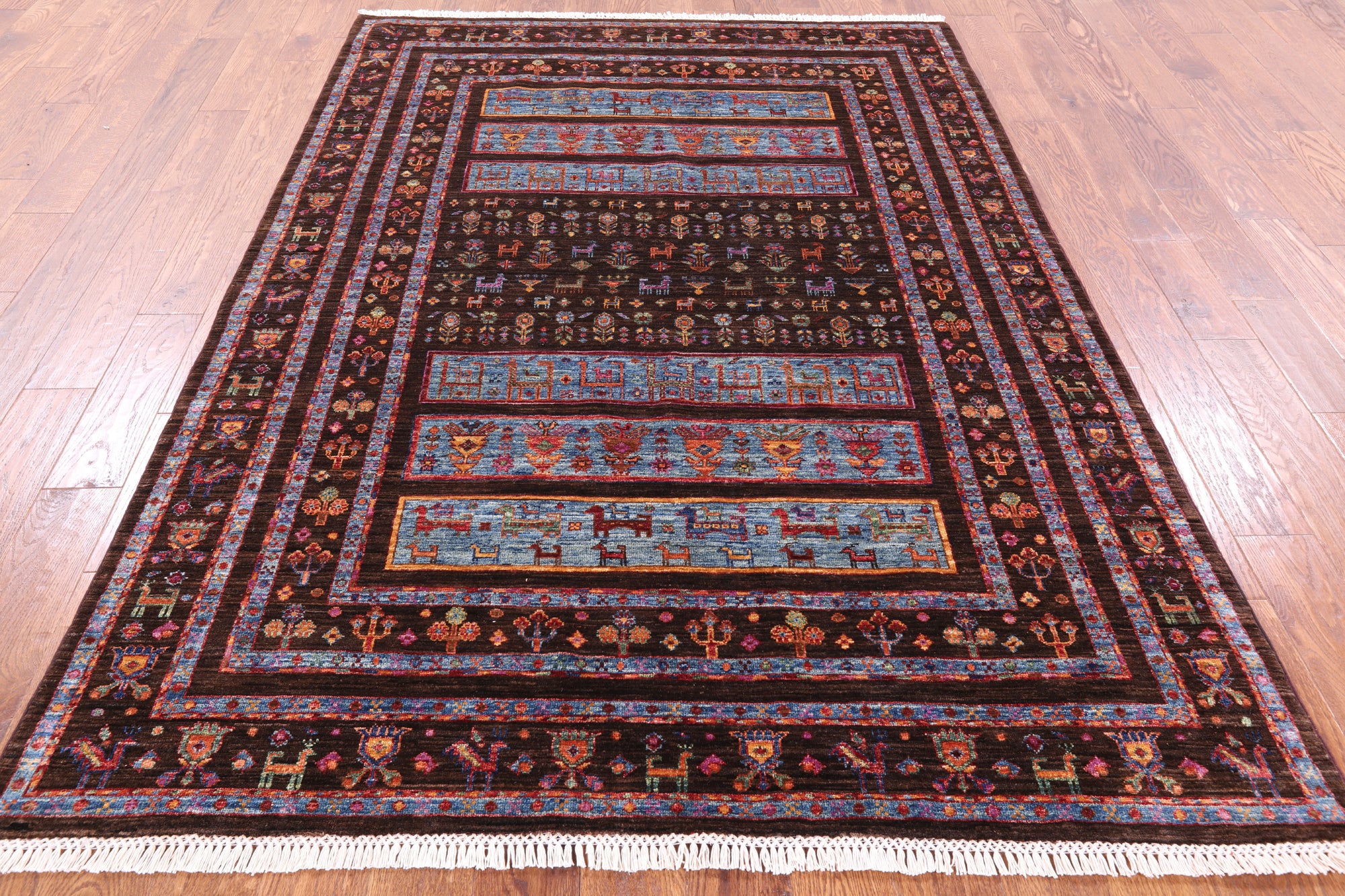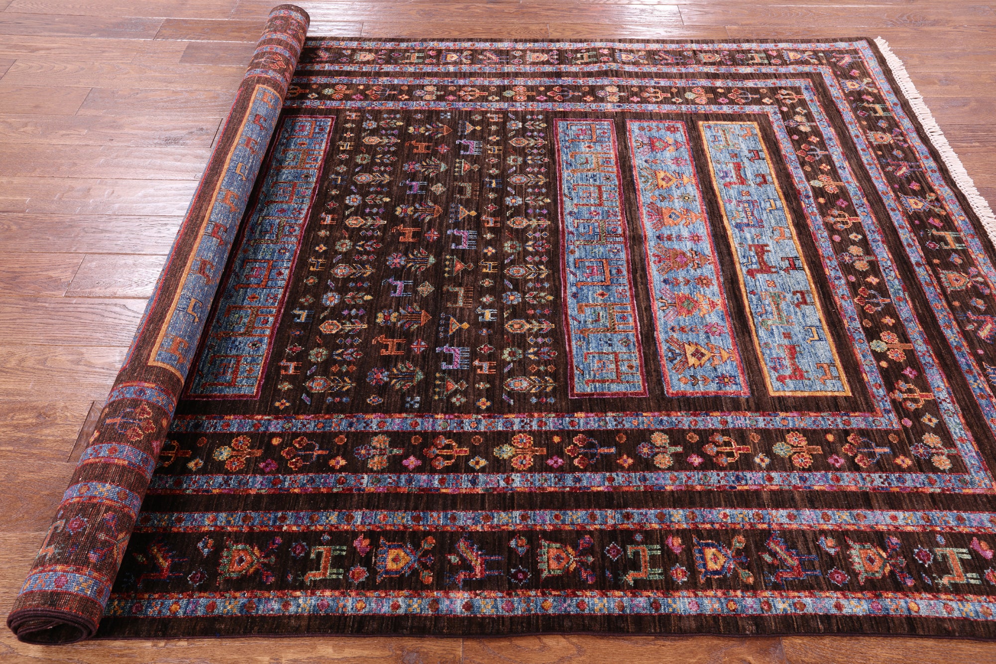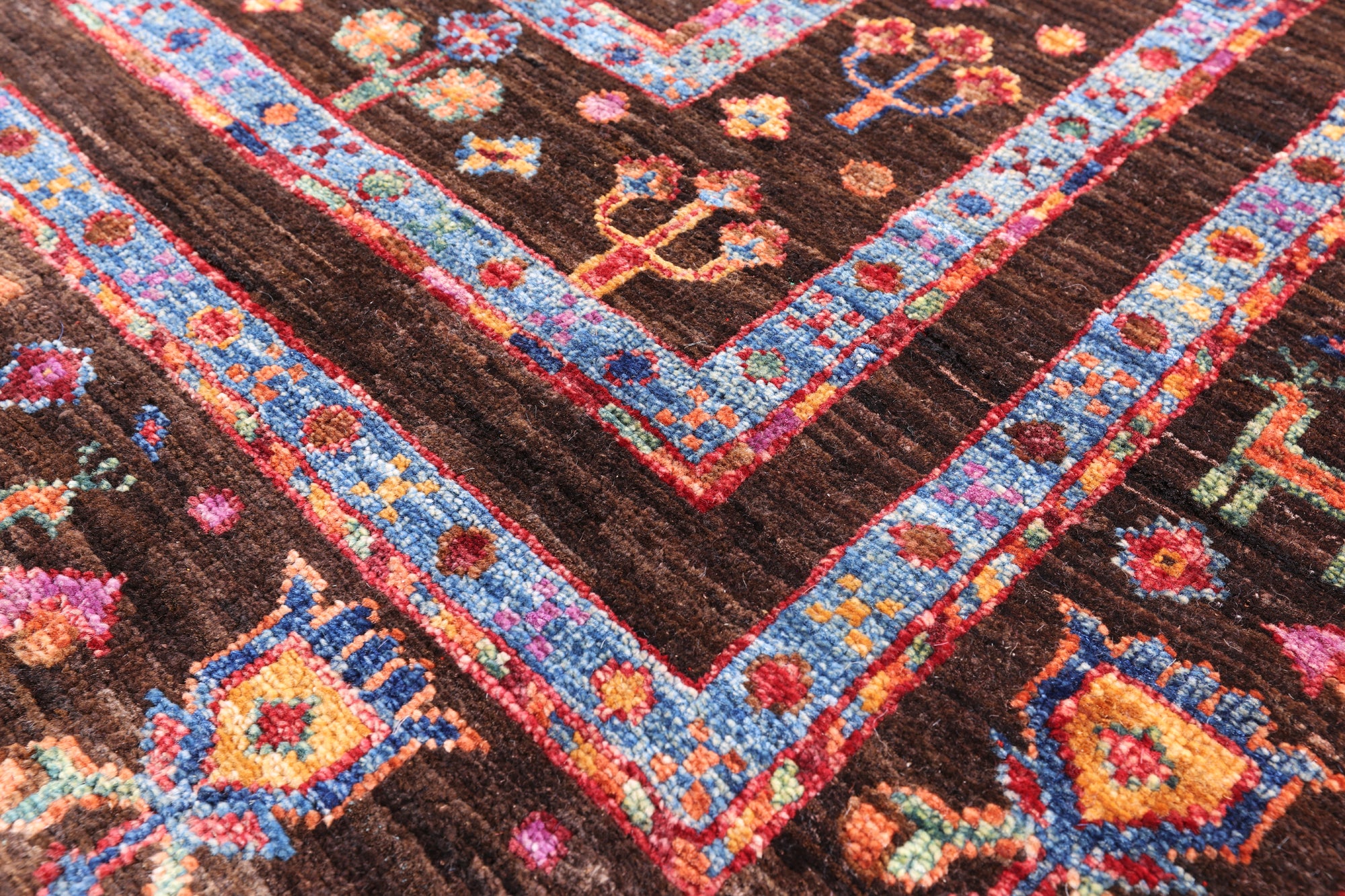 Gabbeh Rugs feature hand-spun wool in both the pile and foundation. These rugs are characterized by their abstract designs that relies upon open fields of color and a playfulness with geometric figures used to depict a story, person, or event. Gabbeh Rugs are popular in a contemporary or modern setting and are extremely durable, usually small to medium size.