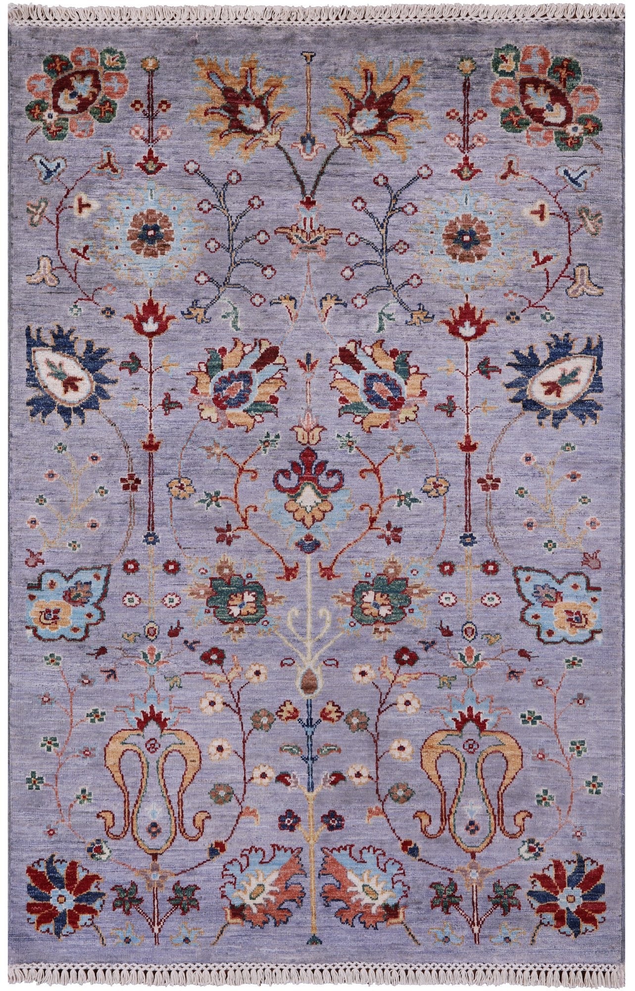 Peshawar Rugs are elegant rugs that are completely hand-spun using a wool pile and a cotton foundation. Occasionally weavers use natural silk in the pile to highlight particular features. Designs are influenced by Kazak & Caucasian styles. These rugs have an attractive natural luster as well as a durable pile and are complementary to antique or modern interiors.