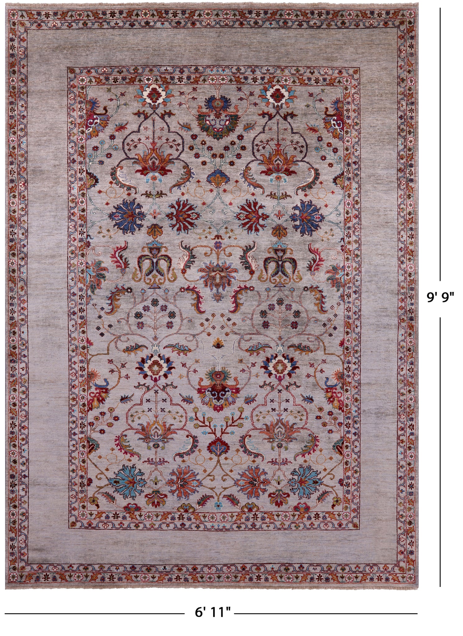 Peshawar Hand Knotted Wool Rug - 6' 11" X 9' 9"