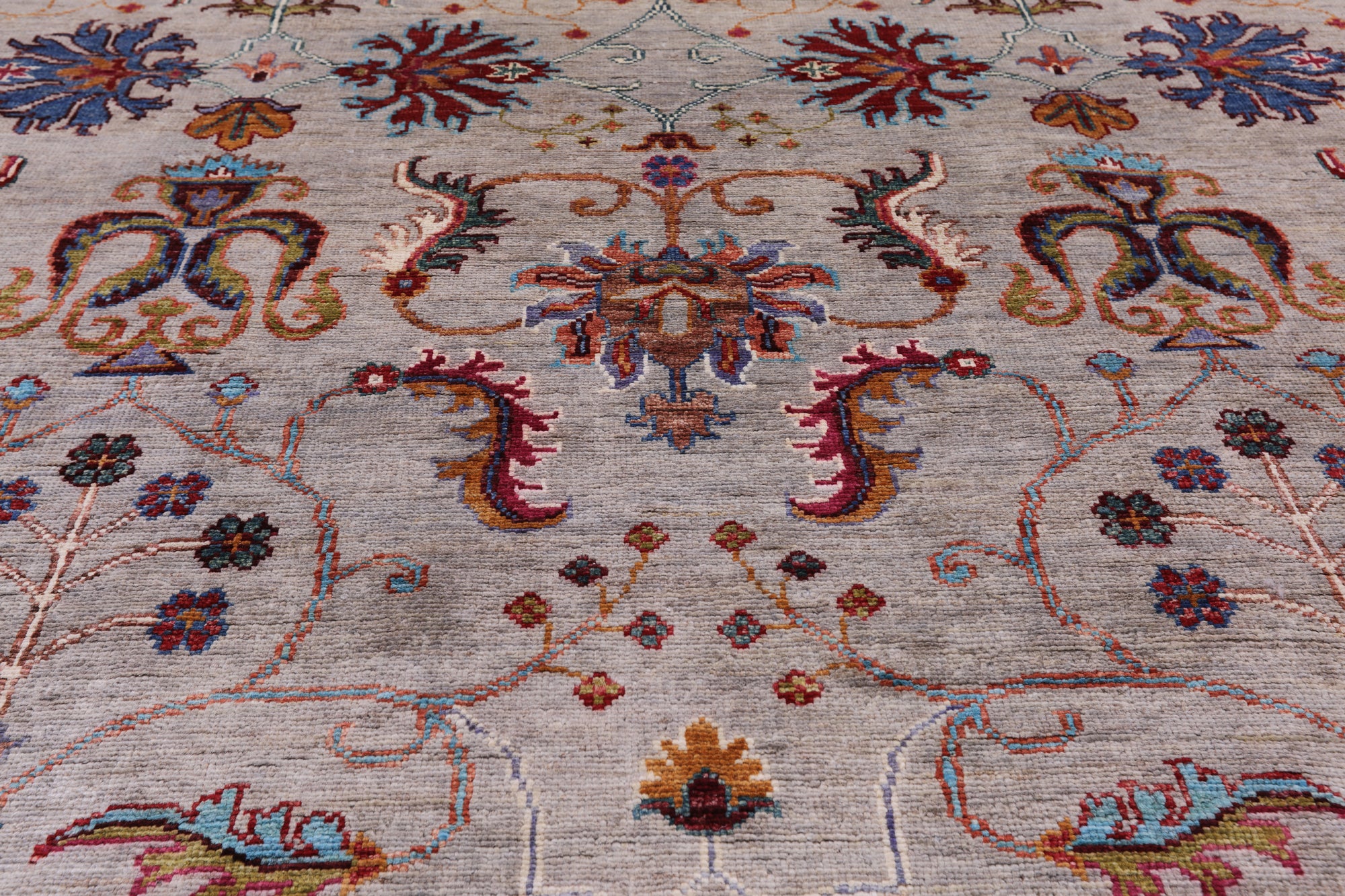 Peshawar Rugs are elegant rugs that are completely hand-spun using a wool pile and a cotton foundation. Occasionally weavers use natural silk in the pile to highlight particular features. Designs are influenced by Kazak & Caucasian styles. These rugs have an attractive natural luster as well as a durable pile and are complementary to antique or modern interiors.