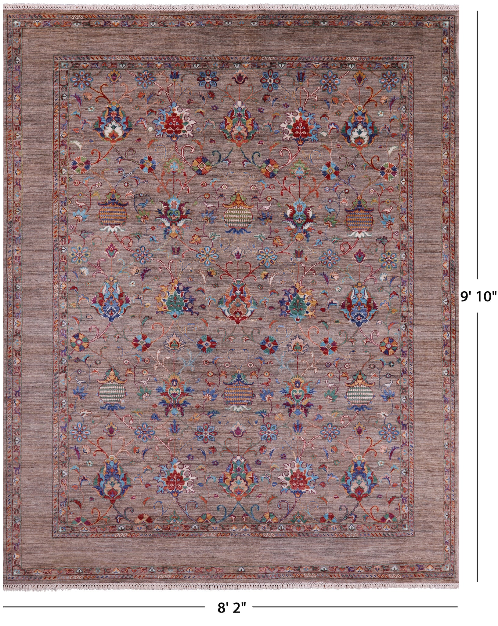 Peshawar Hand Knotted Wool Rug - 8' 2" X 9' 10"