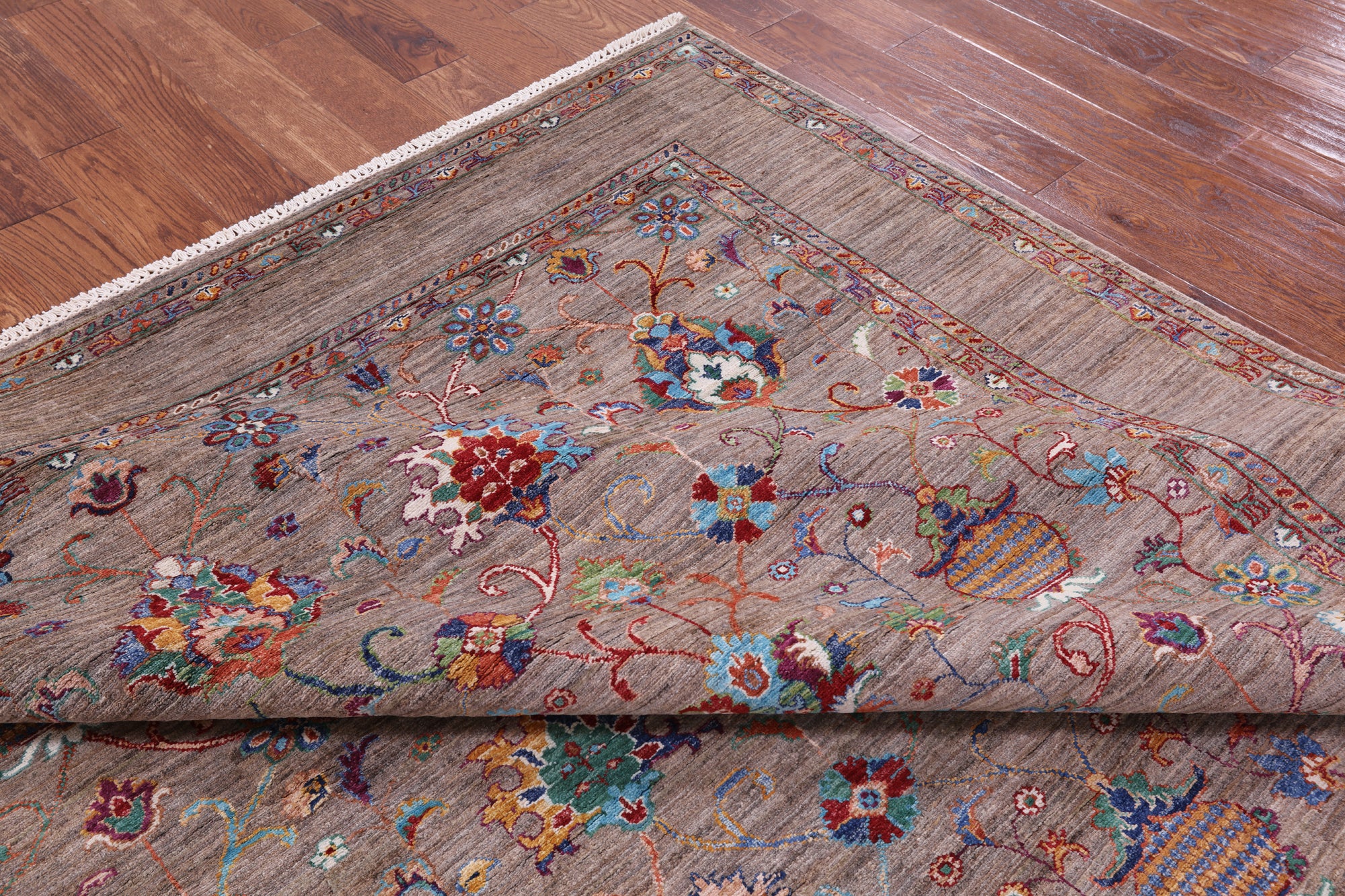 Peshawar Rugs are elegant rugs that are completely hand-spun using a wool pile and a cotton foundation. Occasionally weavers use natural silk in the pile to highlight particular features. Designs are influenced by Kazak & Caucasian styles. These rugs have an attractive natural luster as well as a durable pile and are complementary to antique or modern interiors.