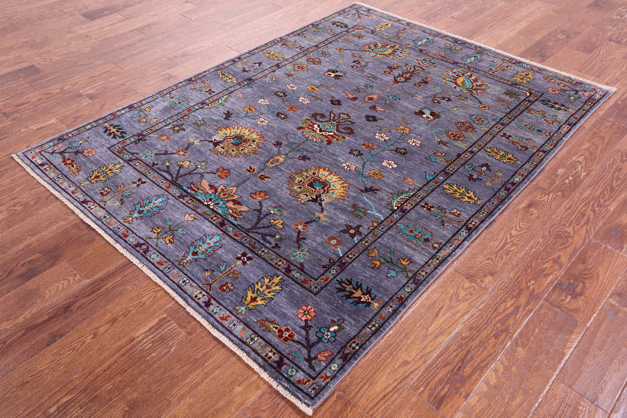 Grey Peshawar Handmade Wool Rug - 4' 11" X 6' 7"