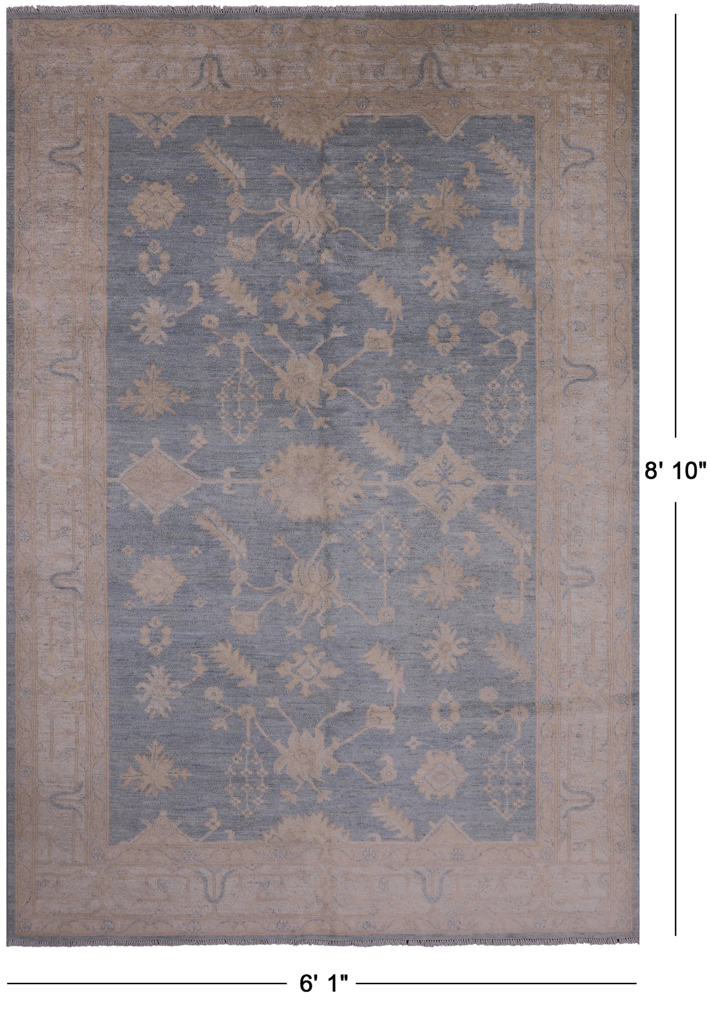 Blue Peshawar Handmade Wool Rug - 6' 1" X 8' 10"