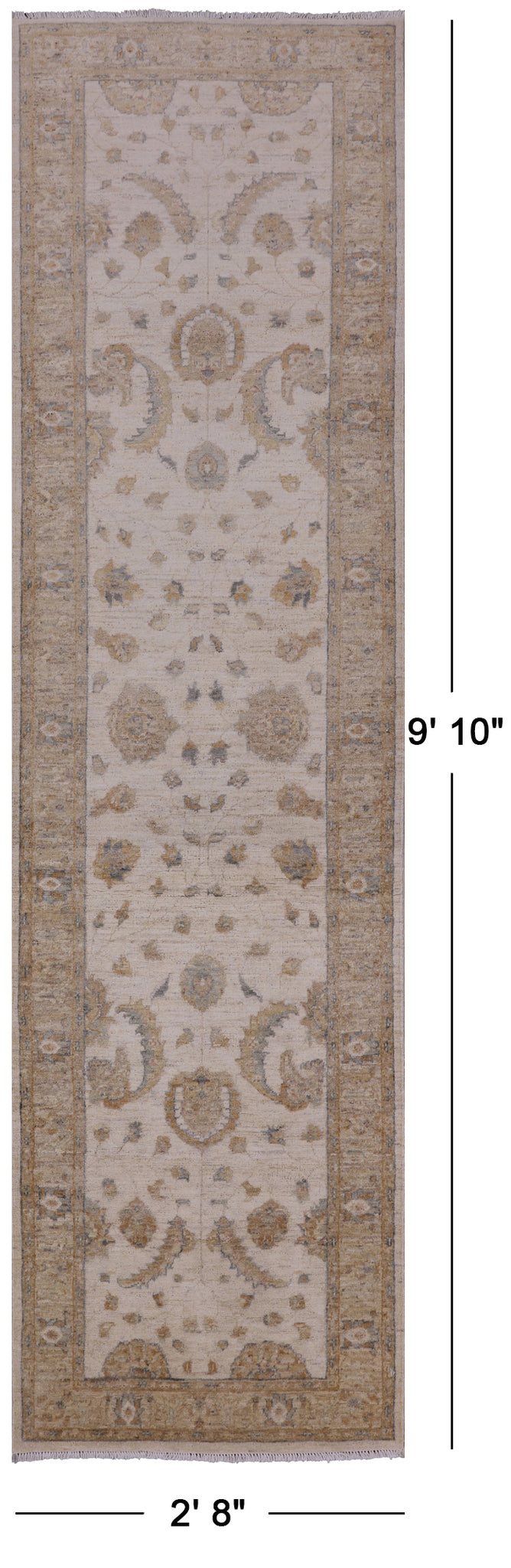 Ivory Peshawar Hand Knotted Runner Rug - 2' 8" X 9' 10"