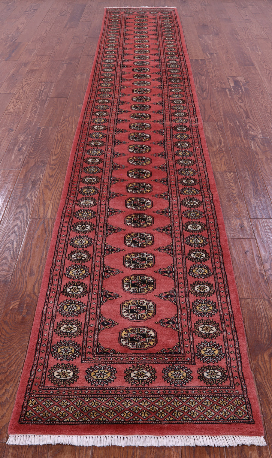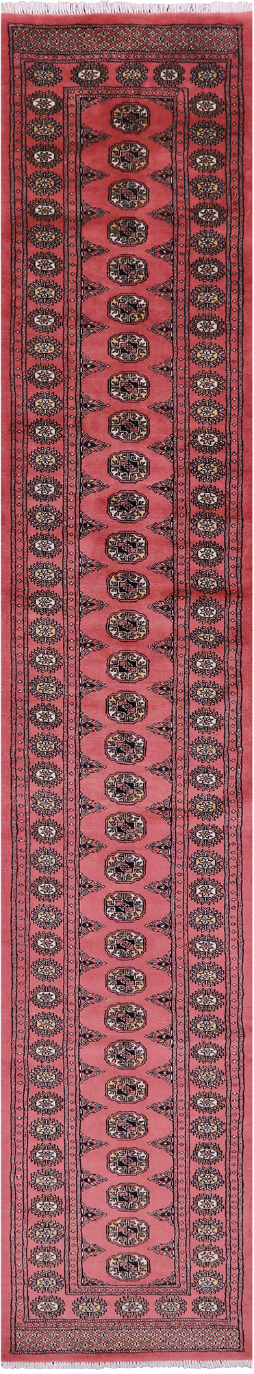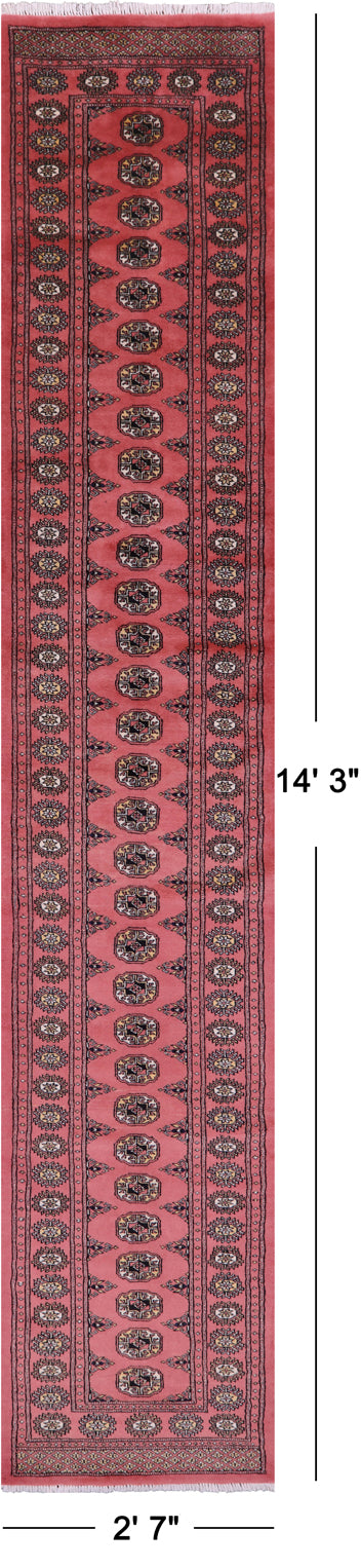 Pink Bokhara Handmade Wool Runner Rug - 2' 7" X 14' 3"