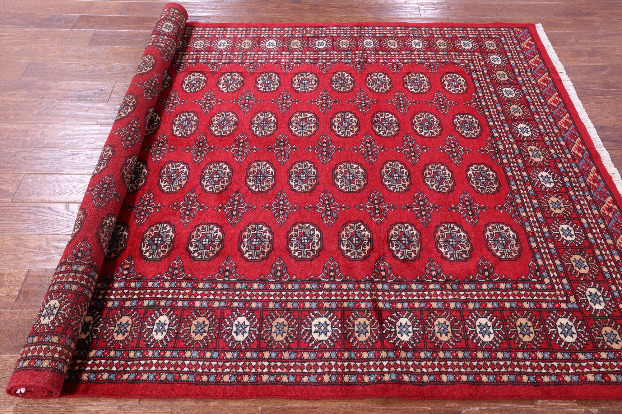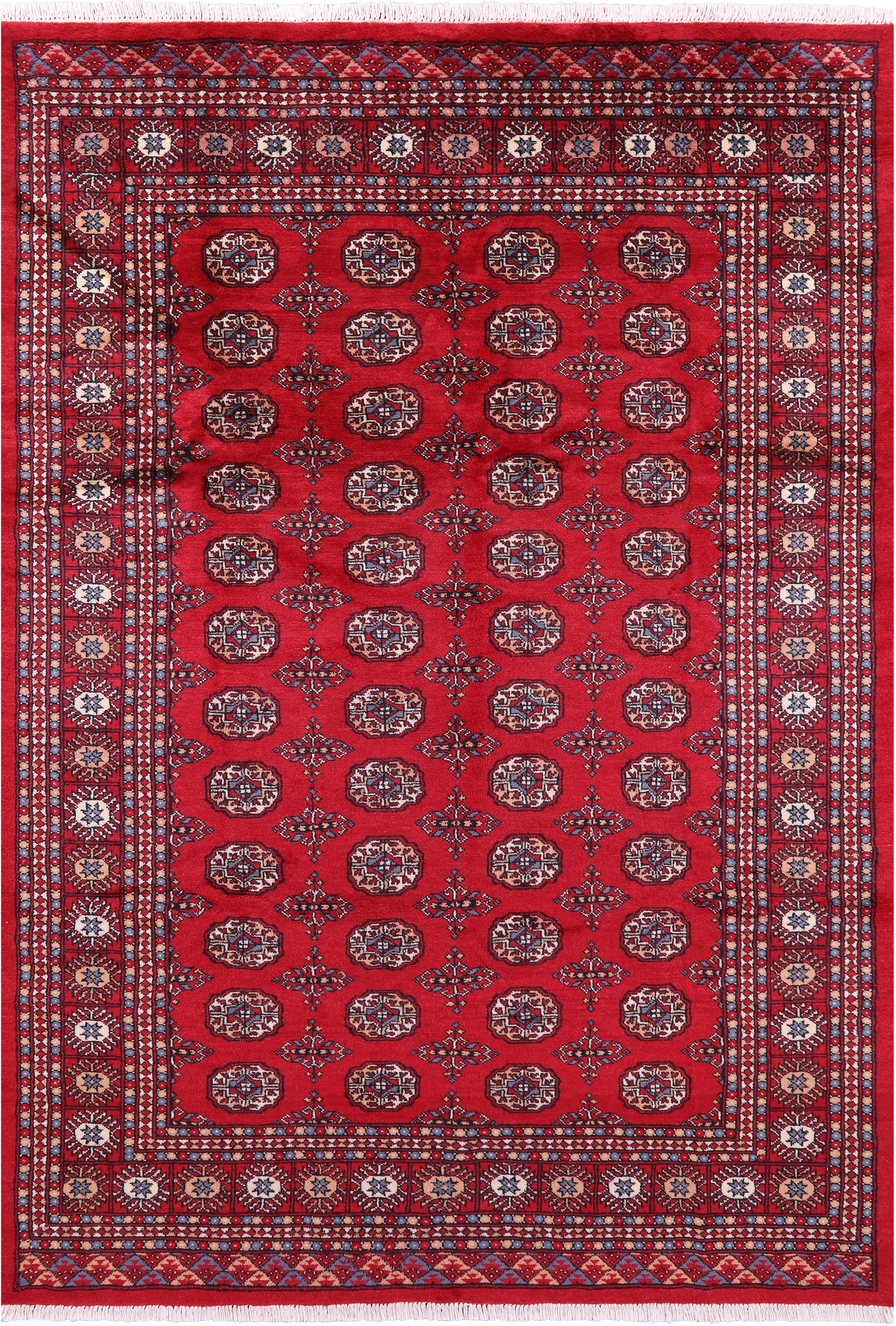 Red Bokhara Handmade Wool Rug - 5' 8" X 8' 2"