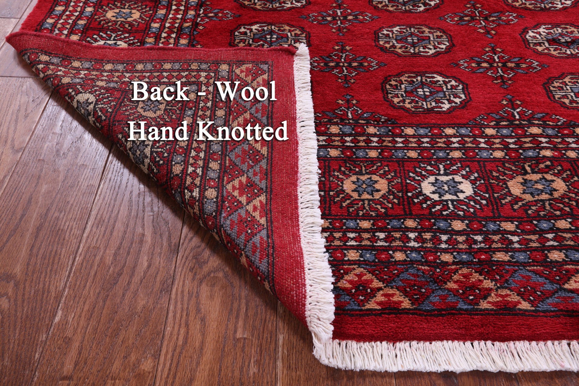Bokhara Rugs are classic Turkoman designs originally created by nomadic tribes in India. Bokhara Rugs are among the most popular handmade rugs widely produced in Pakistan, India & Afghanistan. There foundation and heavy pile consist of wool, and have a soft luxurious feel. There unique designs consist of repeating geometric designs and vary from one tribe to another. Designs are commonly dark blue/navy, black, brown, or red with ivory accents.
