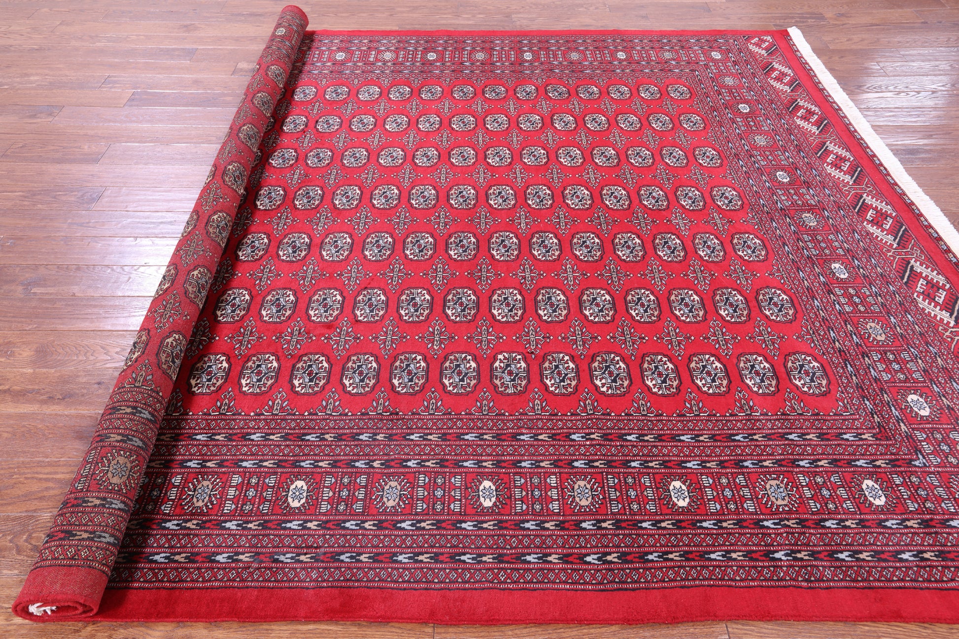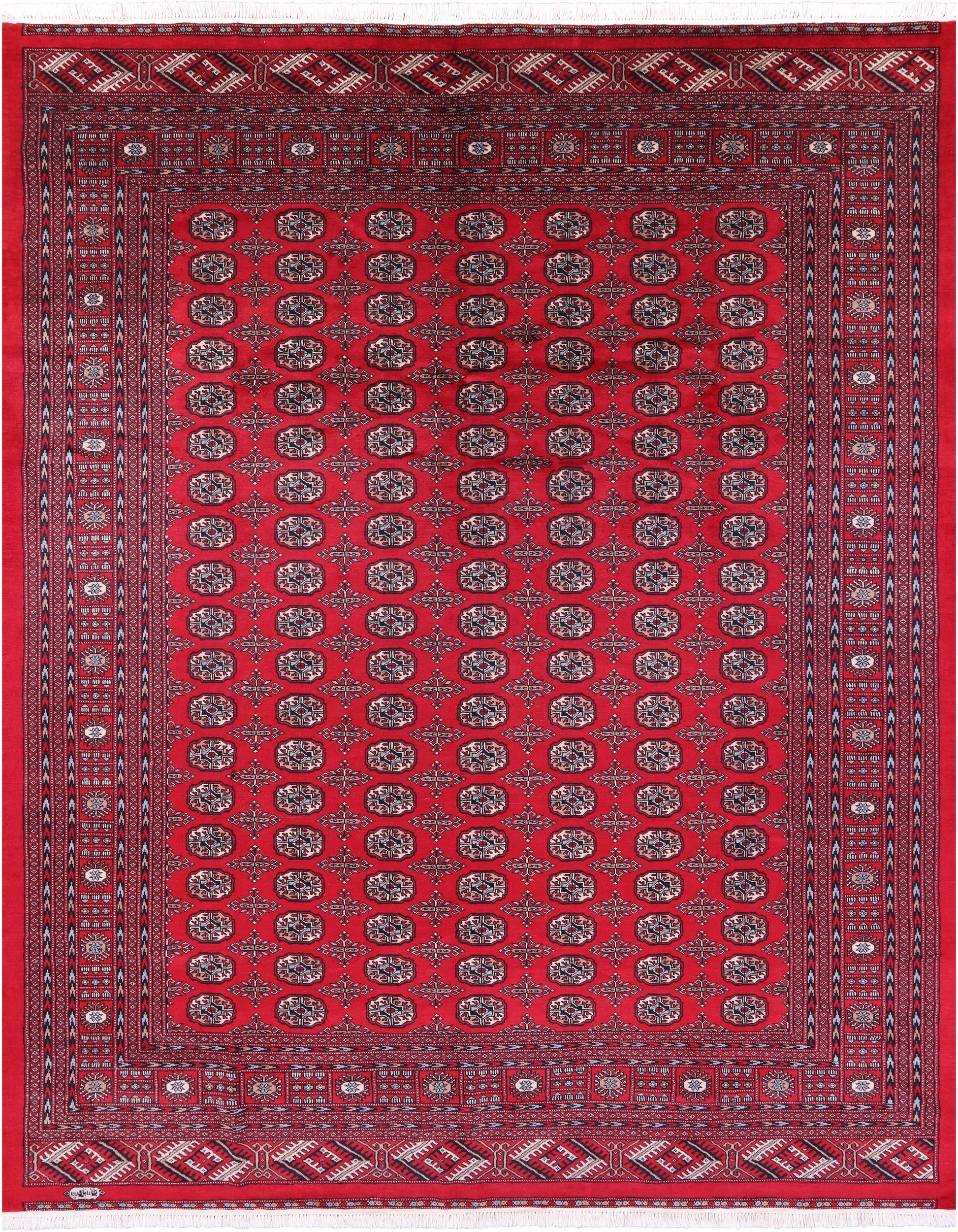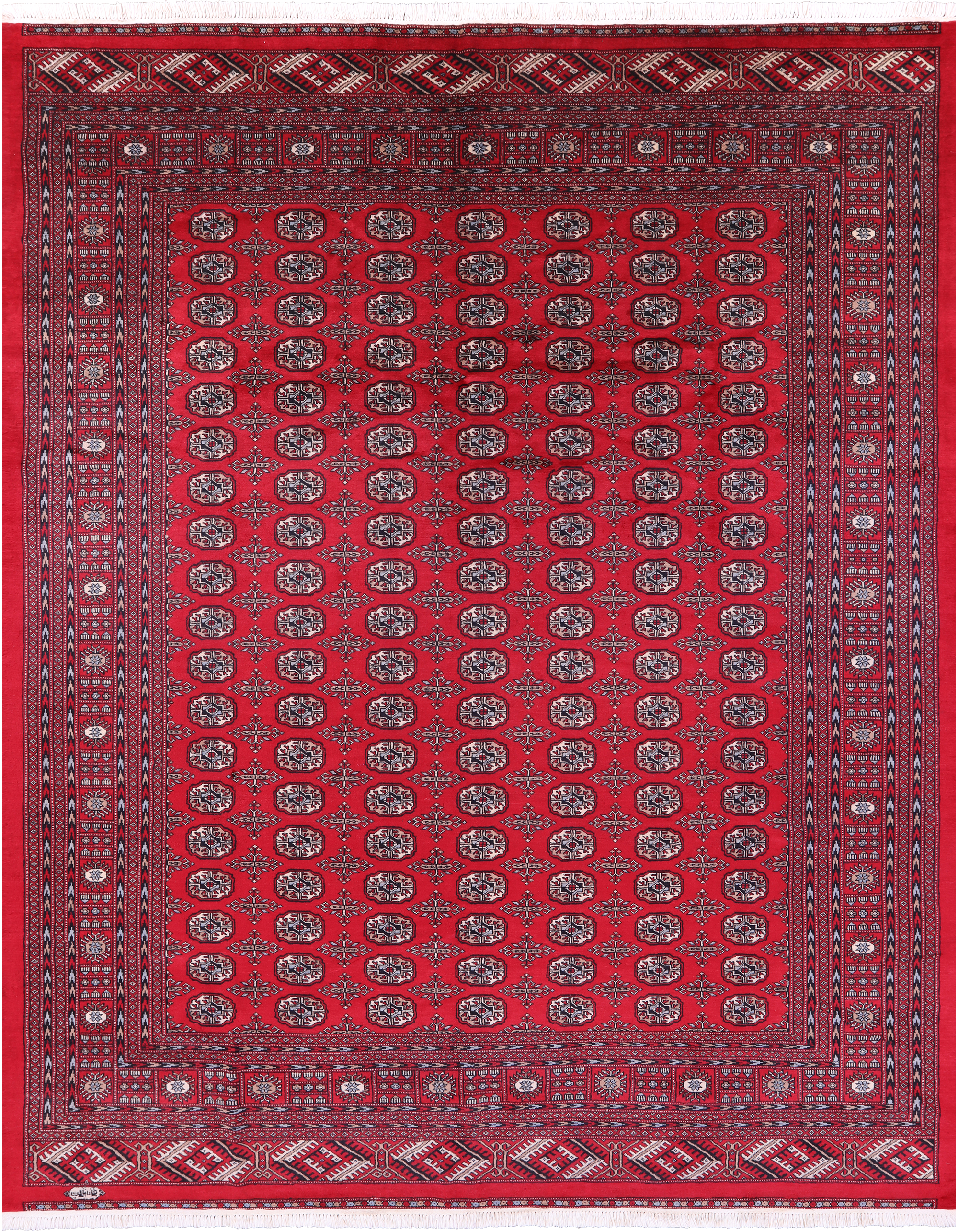 Bokhara Rugs are classic Turkoman designs originally created by nomadic tribes in India. Bokhara Rugs are among the most popular handmade rugs widely produced in Pakistan, India & Afghanistan. There foundation and heavy pile consist of wool, and have a soft luxurious feel. There unique designs consist of repeating geometric designs and vary from one tribe to another. Designs are commonly dark blue/navy, black, brown, or red with ivory accents.