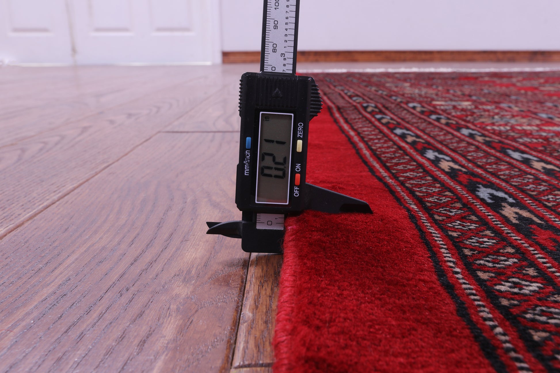 Red Signed Bokhara Hand-Knotted Wool Rug - 8' 5" X 10' 5"