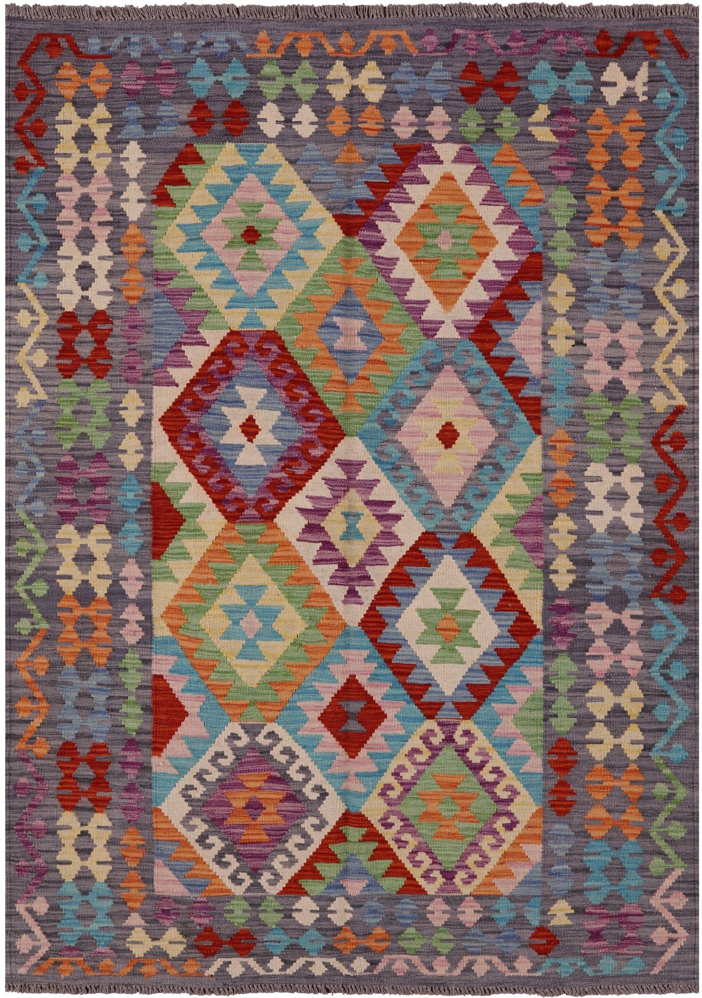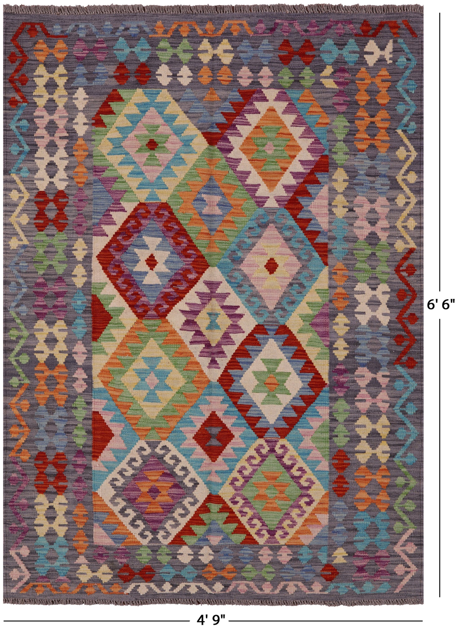 Reversible Kilim Flat Weave Wool On Wool Rug - 4' 9" X 6' 6"