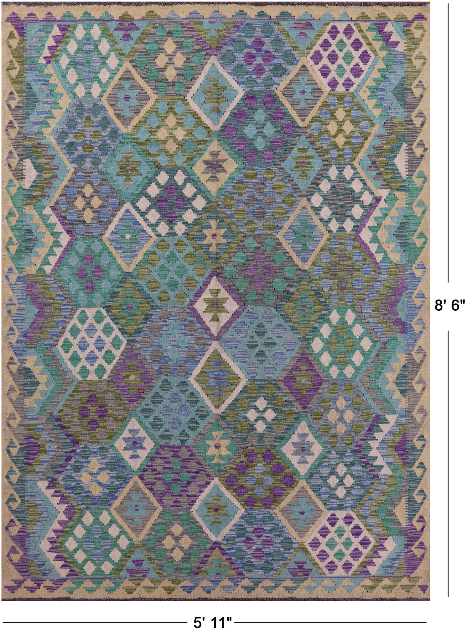 Reversible Kilim Flat Weave Wool On Wool Rug - 5' 11" X 8' 6"