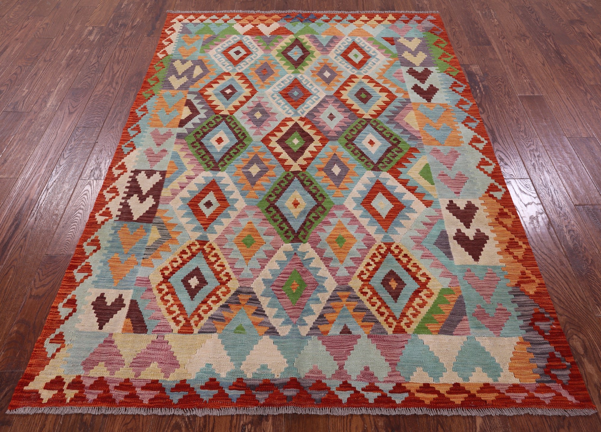 Reversible Kilim Flat Weave Wool On Wool Rug - 5' 7" X 7' 9"