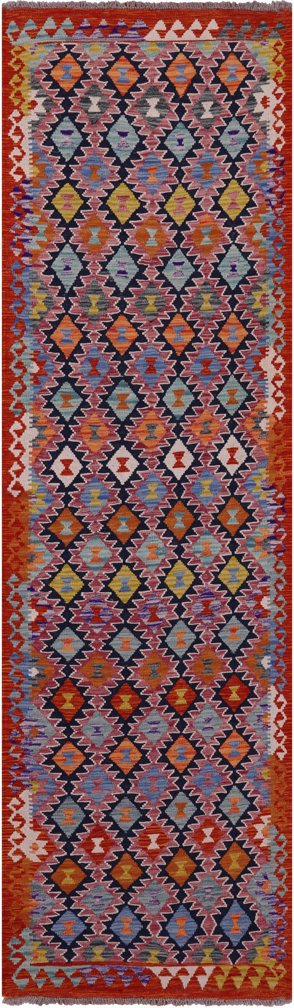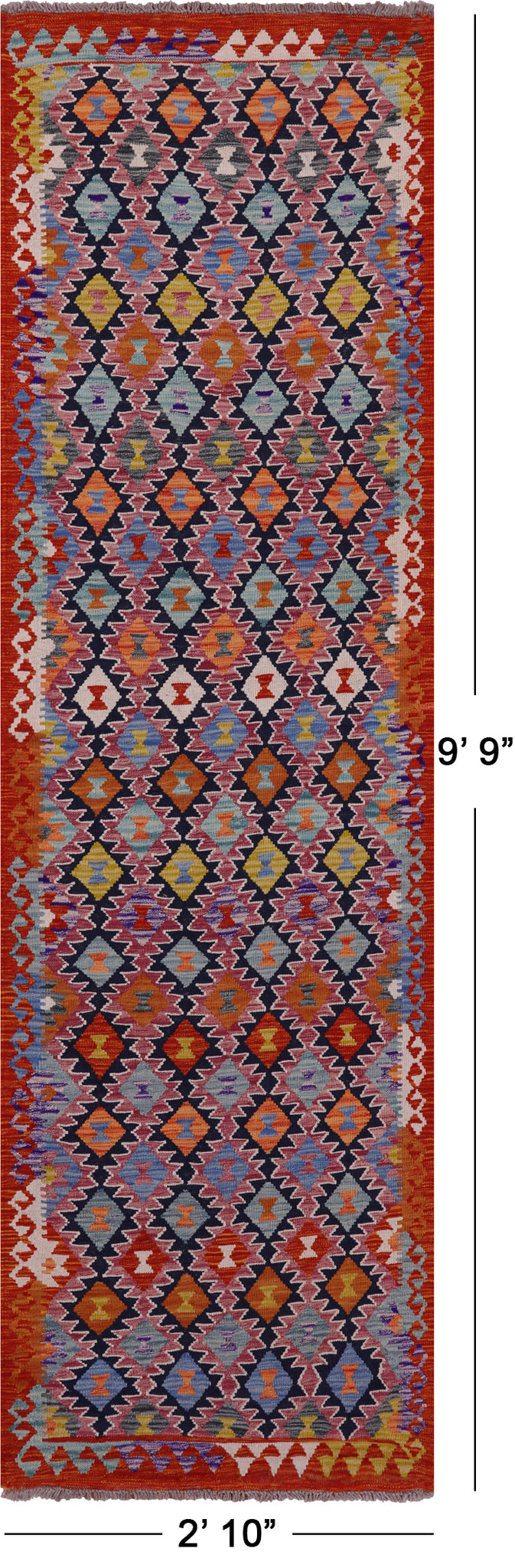 Reversible Kilim Flat Weave Wool On Wool Runner Rug - 2' 10" X 9' 9"
