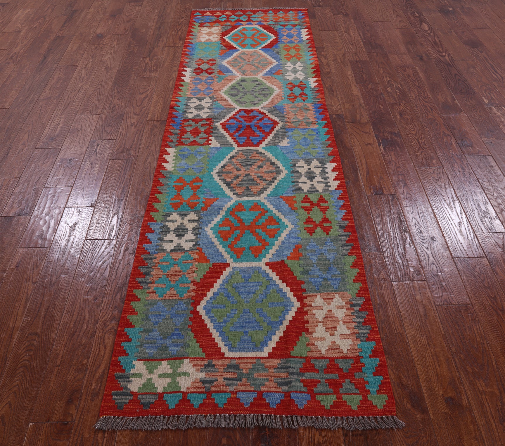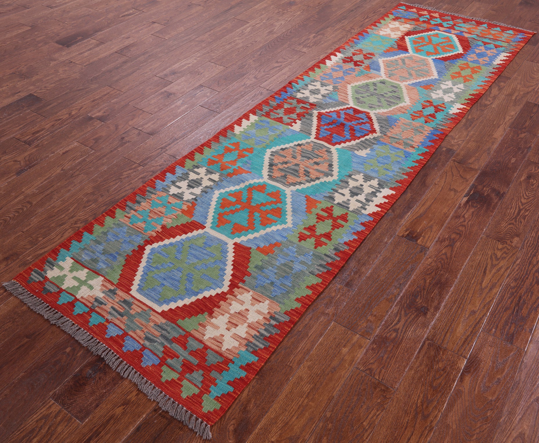 Reversible Kilim Flat Weave Wool On Wool Runner Rug - 2' 9" X 9' 7"