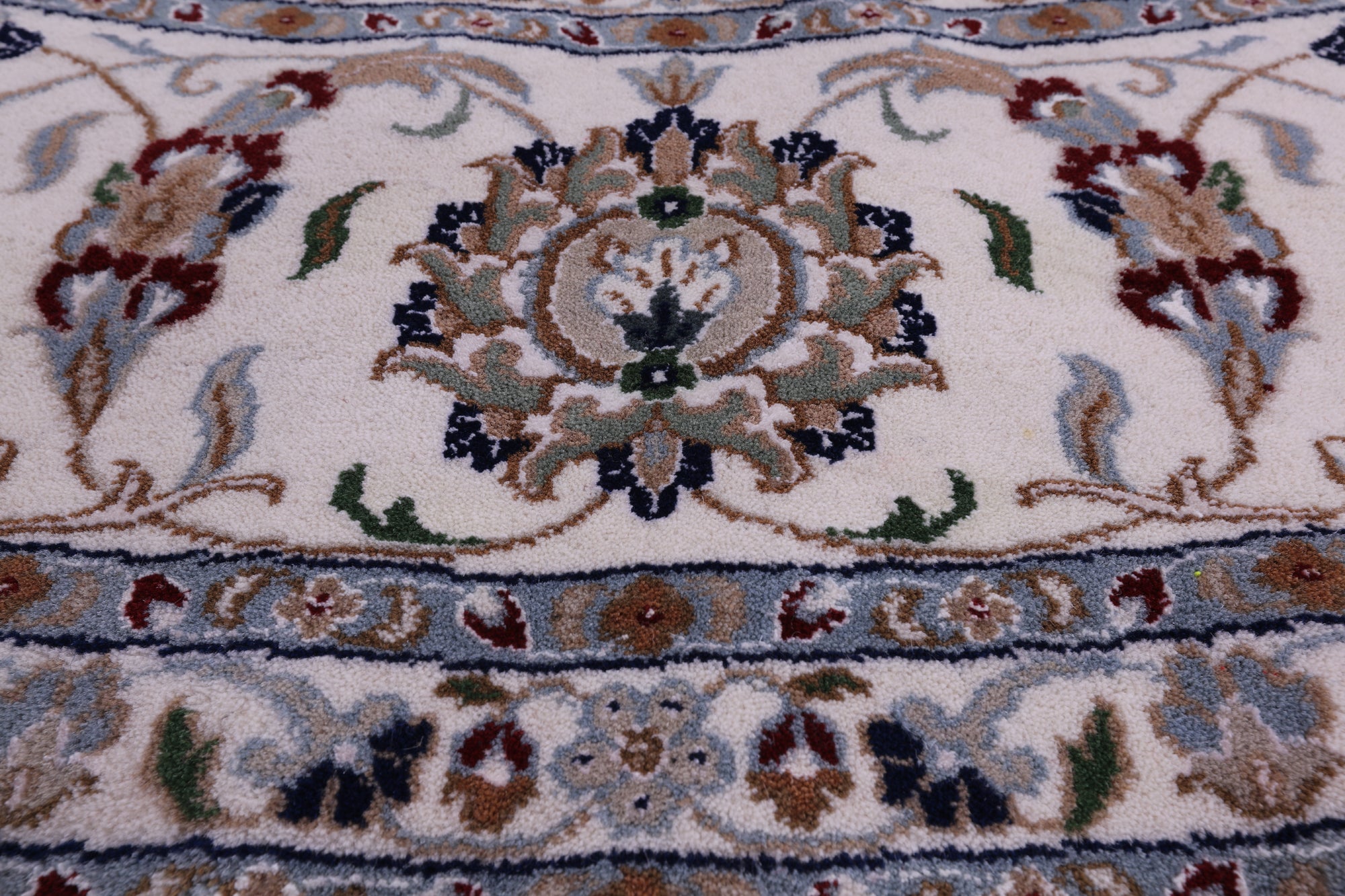 These rugs are particularly popular, they have a high knot density and the materials consist of wool and silk warp. In addition to the high quality of the material itself the designs and color combinations are simply magnificent for Nain rugs. Most have patterns with medallions in the middle and floral motifs. Silk is used as a highlighting tool in the detail of the design. Nain rugs are clipped short so the design stands out even more than on other rugs.