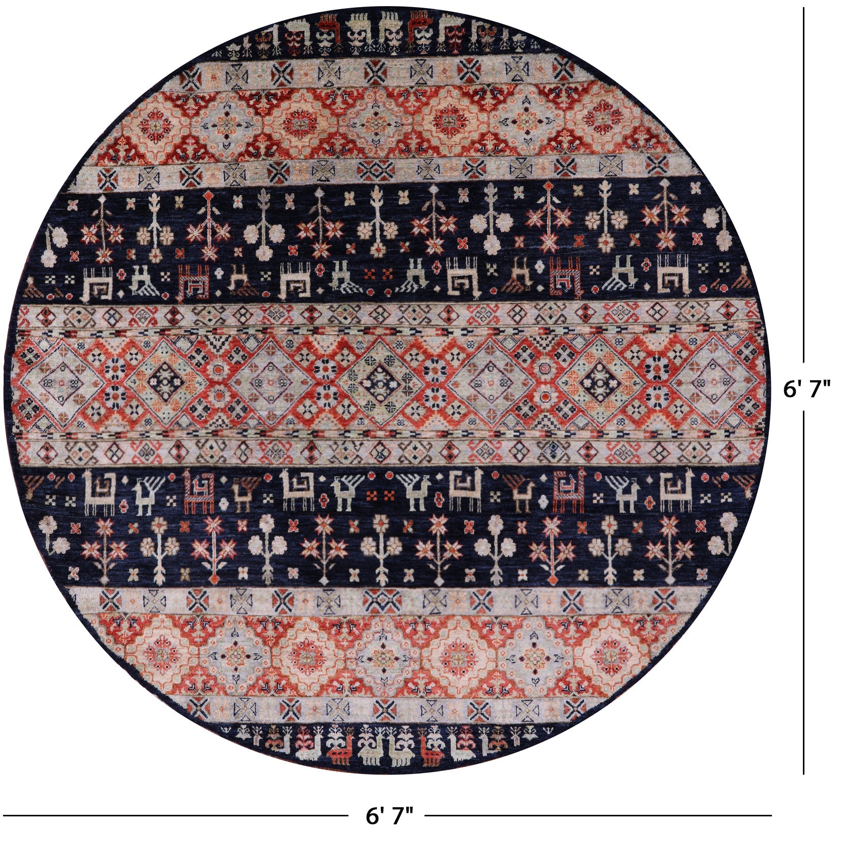 Round Tribal Persian Gabbeh Hand Knotted Wool Rug - 6' 7" X 6' 7"