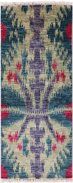 Ikat Hand Knotted Runner Rug - 2' 6" X 6' 1"