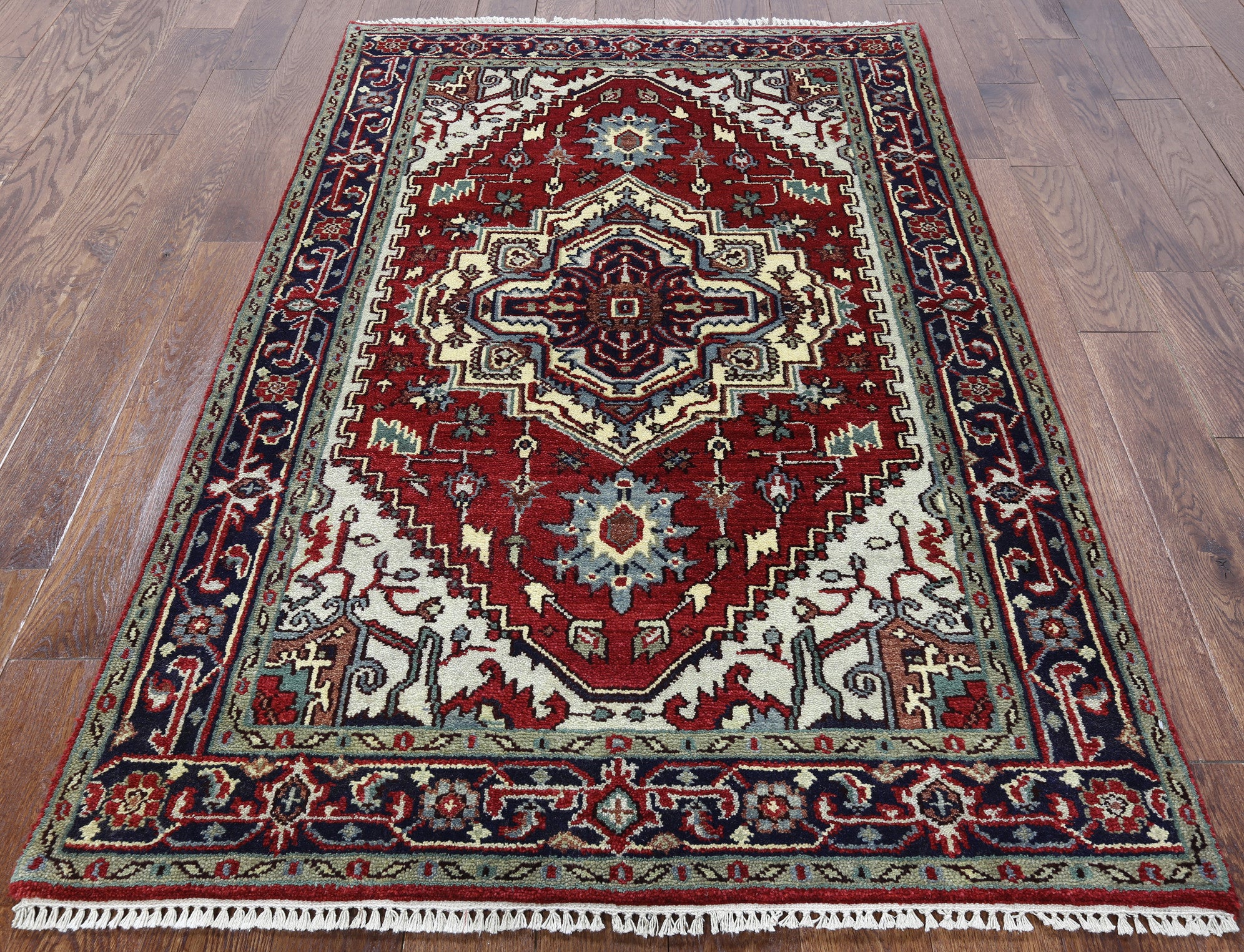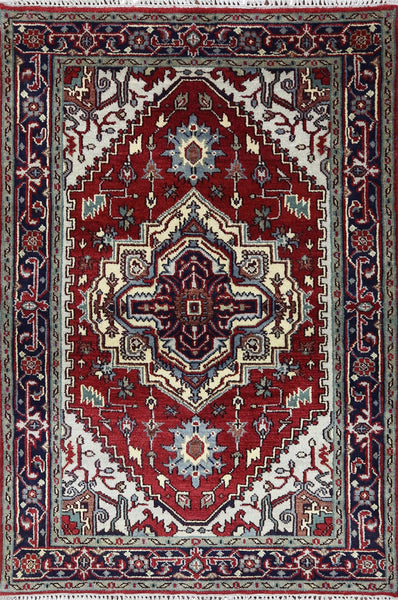 Heriz Serapi Hand Knotted Rug - 4' 2" X 6' 1"