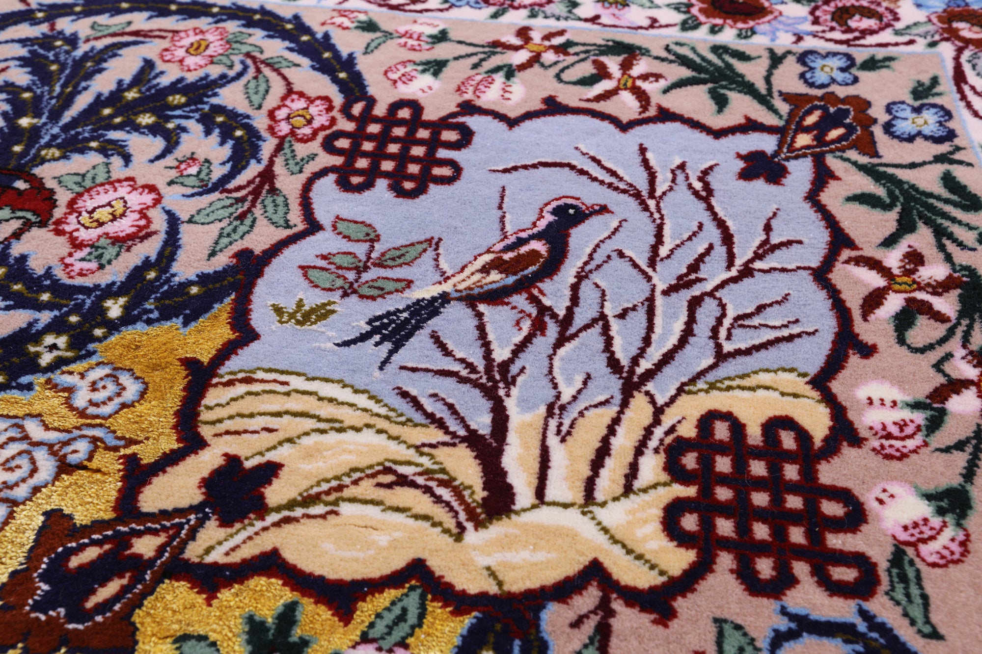 The Isfahan rugs are made with exceptionally good quality of wool & silk. They use traditional motifs inspired by architectural tiles that once decorated the historical buildings from which these rugs originated in. When it comes to high class designs the composition, patterns, and materials of Isfahan meets those expectations. The motifs usually consist of medallions with palmetts and also figural motifs. Isfahan rugs have an extremely high knot density and are woven with silk and golden threads, which give them their luxurious look.