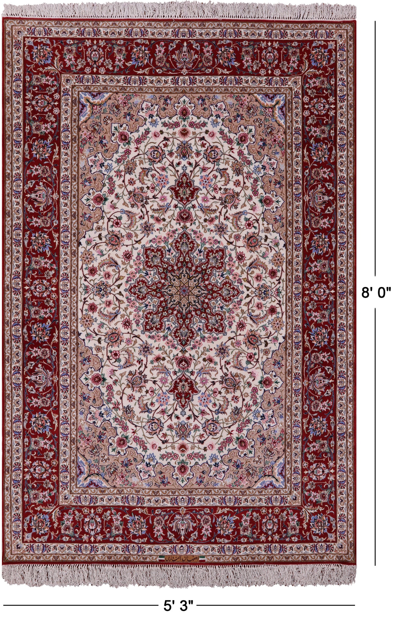 Ivory Signed Isfahan Authentic Persian Hand Knotted Wool & Silk Area Rug - 5' 3" X 8' 0"