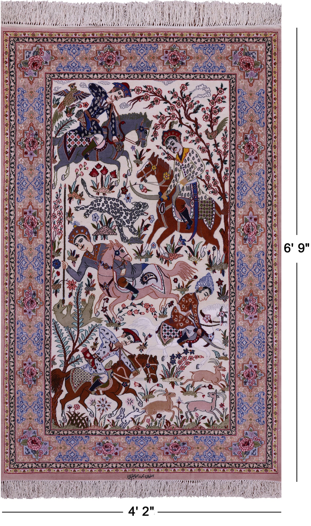 The Isfahan rugs are made with exceptionally good quality of wool & silk. They use traditional motifs inspired by architectural tiles that once decorated the historical buildings from which these rugs originated in. When it comes to high class designs the composition, patterns, and materials of Isfahan meets those expectations. The motifs usually consist of medallions with palmetts and also figural motifs. Isfahan rugs have an extremely high knot density and are woven with silk and golden threads, which give them their luxurious look.