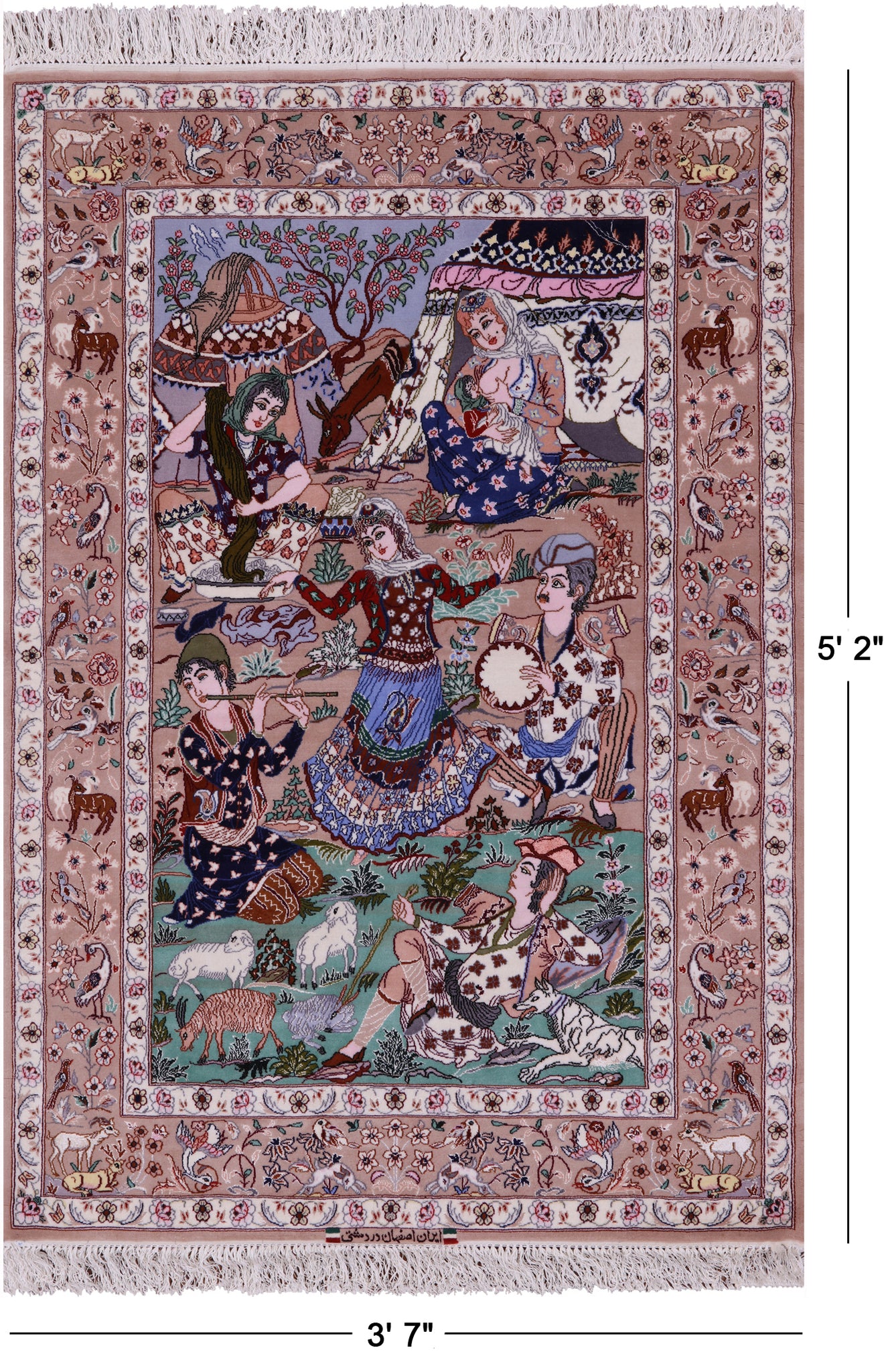 Signed Isfahan Authentic Persian Pictorial Hand Knotted Wool & Silk Area Rug - 3' 7" X 5' 2"
