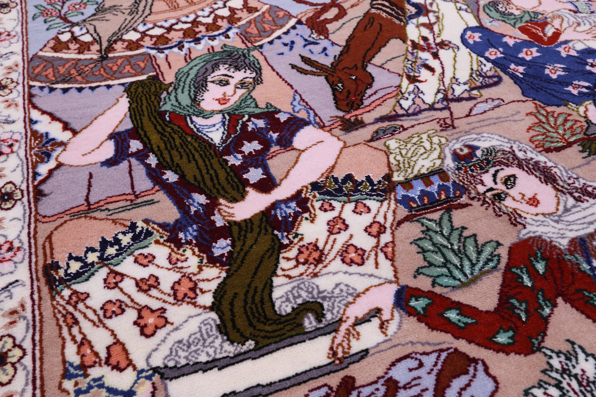 The Isfahan rugs are made with exceptionally good quality of wool & silk. They use traditional motifs inspired by architectural tiles that once decorated the historical buildings from which these rugs originated in. When it comes to high class designs the composition, patterns, and materials of Isfahan meets those expectations. The motifs usually consist of medallions with palmetts and also figural motifs. Isfahan rugs have an extremely high knot density and are woven with silk and golden threads, which give them their luxurious look.