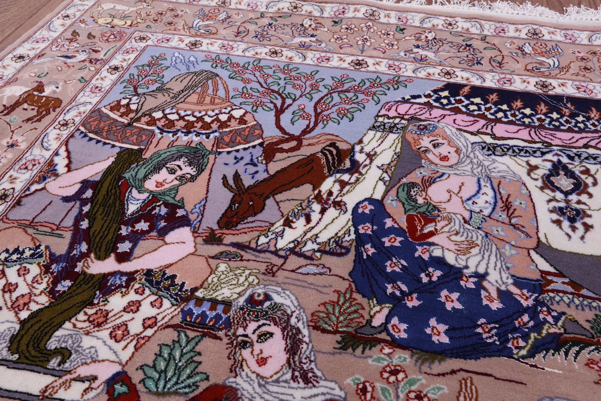 Signed Isfahan Authentic Persian Pictorial Hand Knotted Wool & Silk Area Rug - 3' 7" X 5' 2"