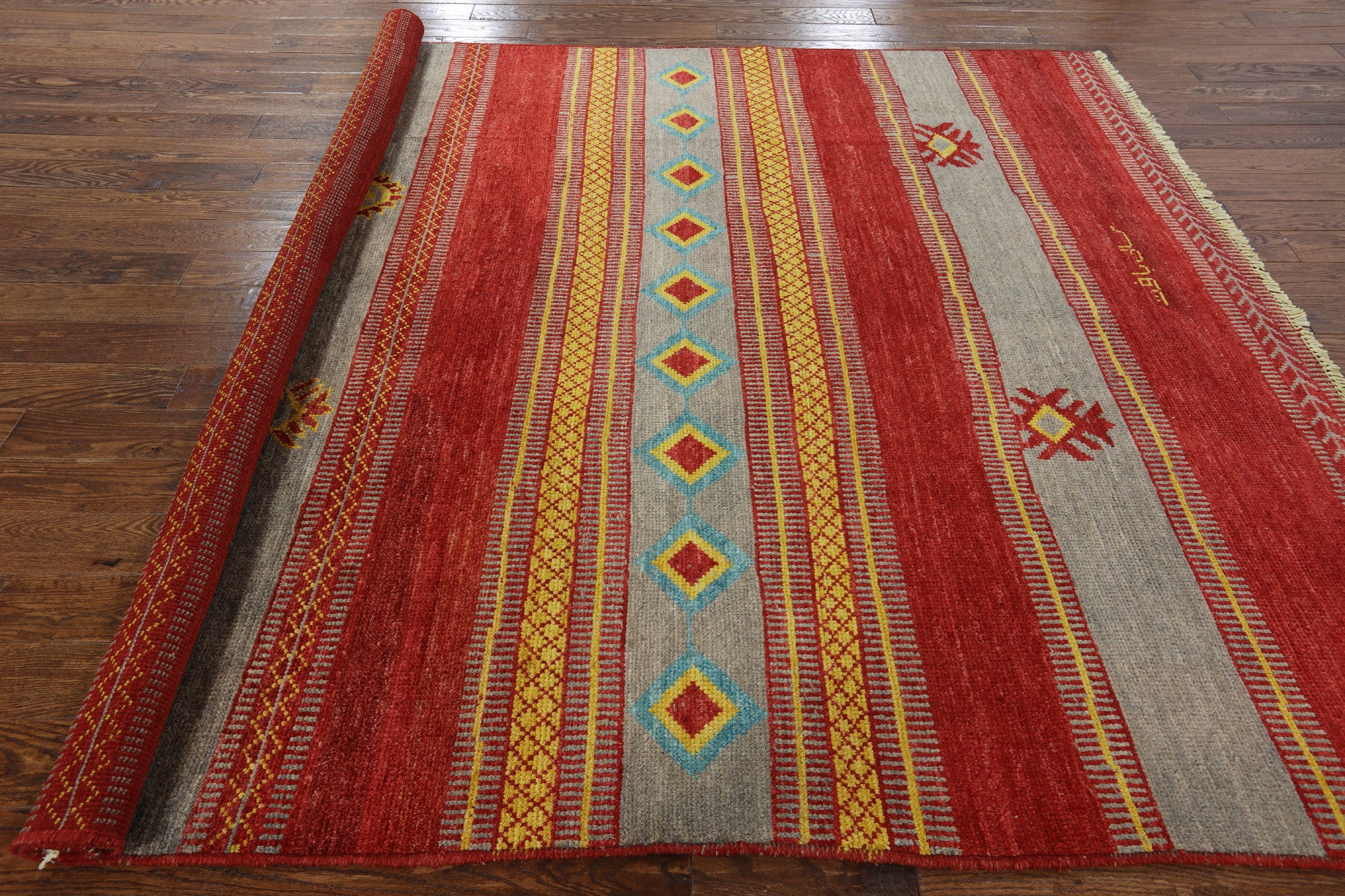 Moroccan Rugs are hand-knotted Oriental rugs that consist of a thick wool pile. Some Moroccan pieces are 100% Wool while others contain a Wool & Silk blend. Each Moroccan has a bit of history depicting strong aspect of culture, and its designs are inspired by nature and the imagination. These pieces of art are usually dyed in bold colors, and the designs are almost always geometric or tribal.