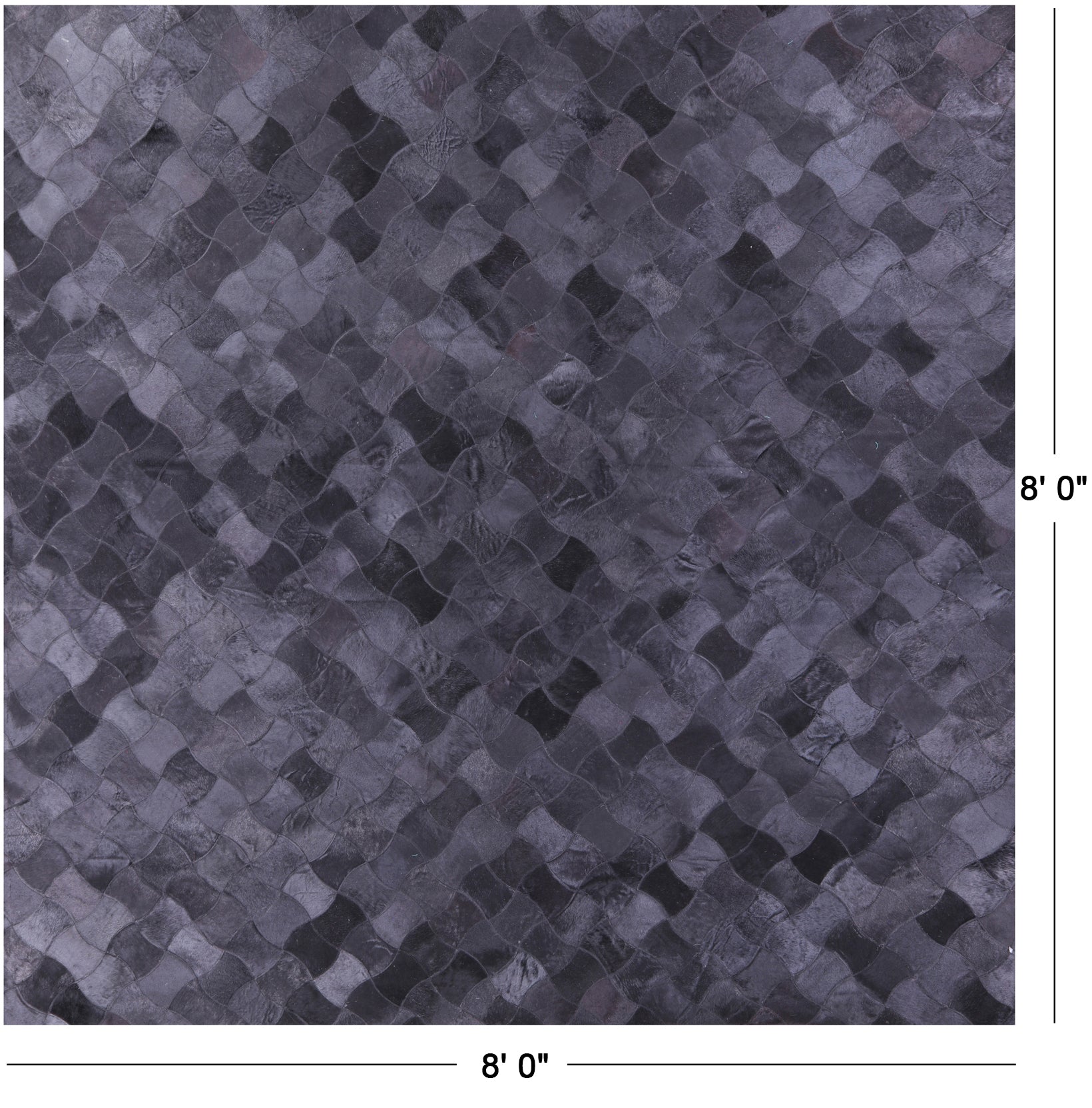 Black Square Natural Cowhide Hand Stitched Patchwork Rug - 8' 0" X 8' 0"