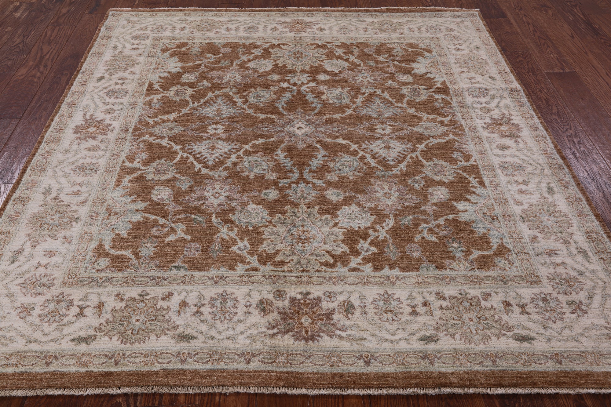 Square Peshawar Hand Knotted Wool Rug - 6' 0" X 6' 3"