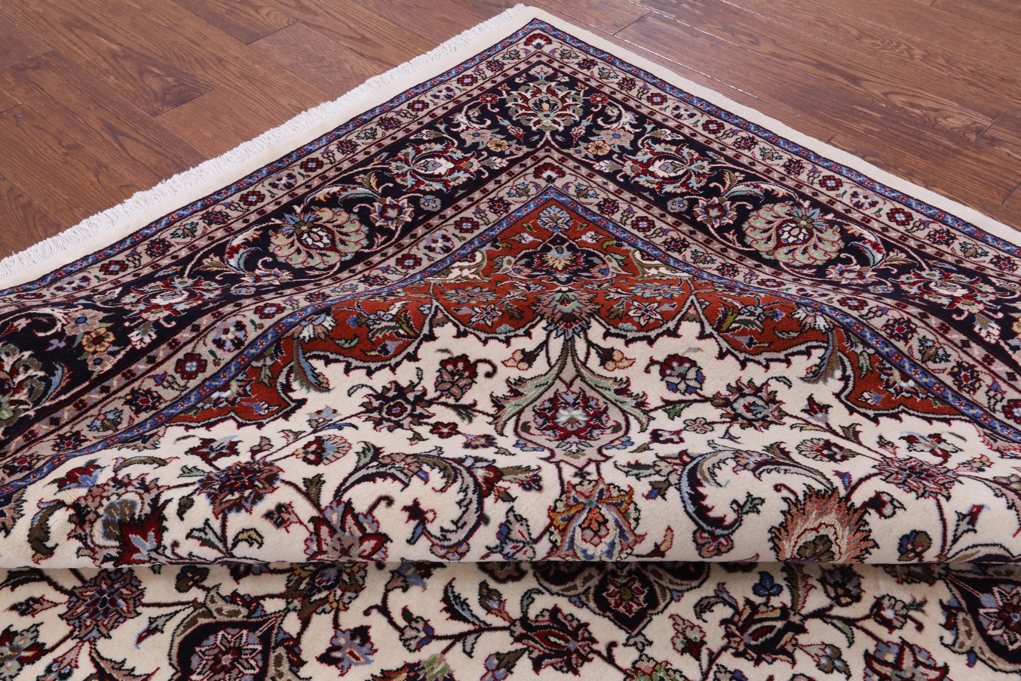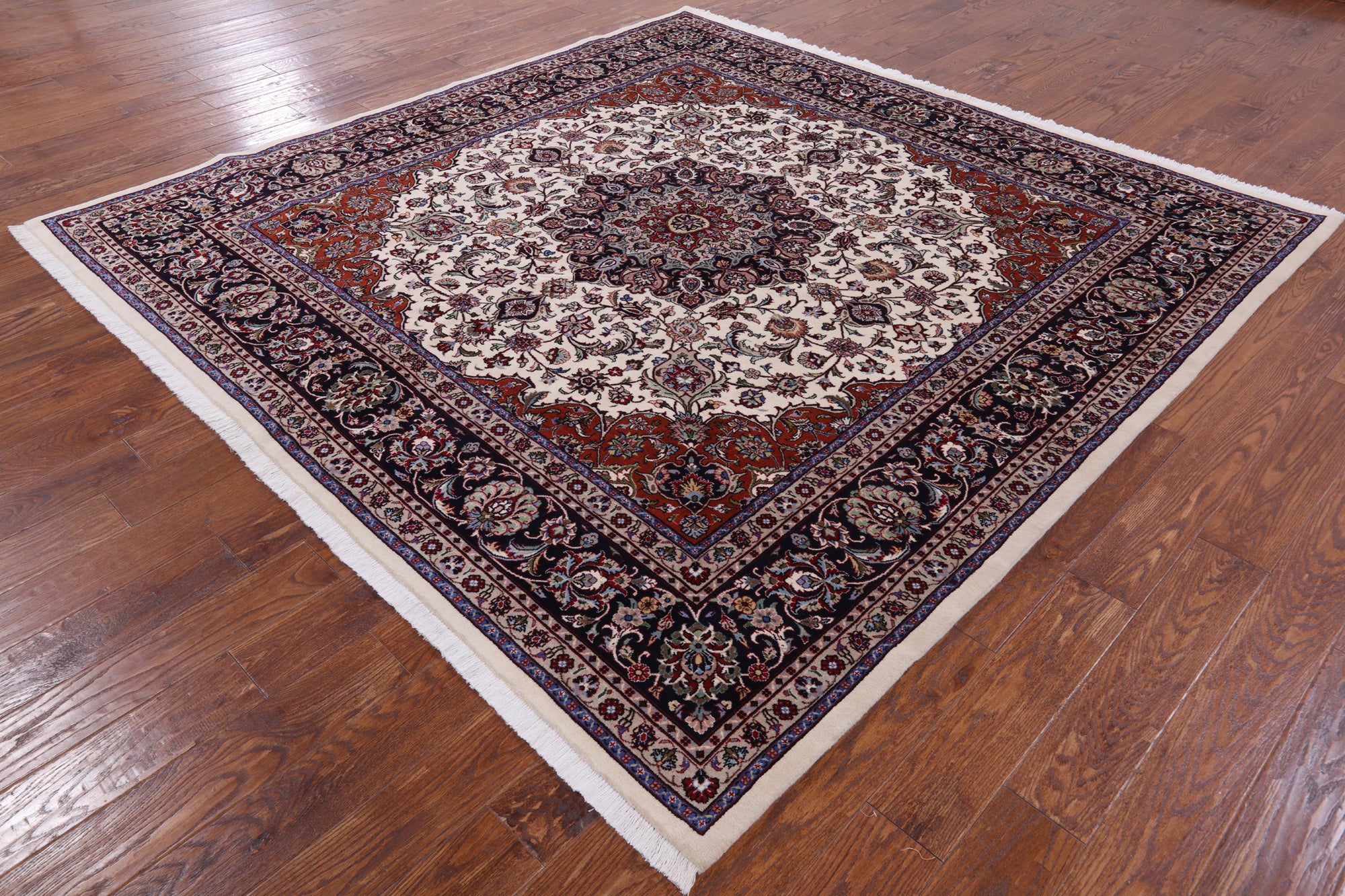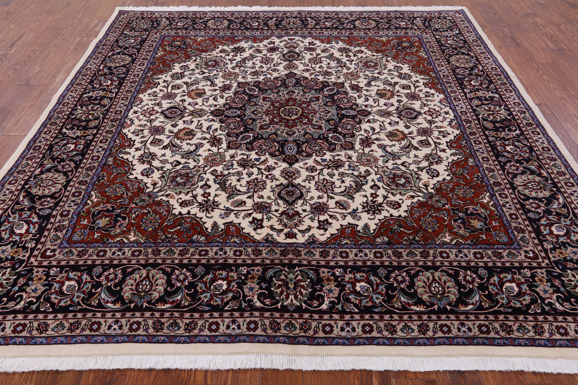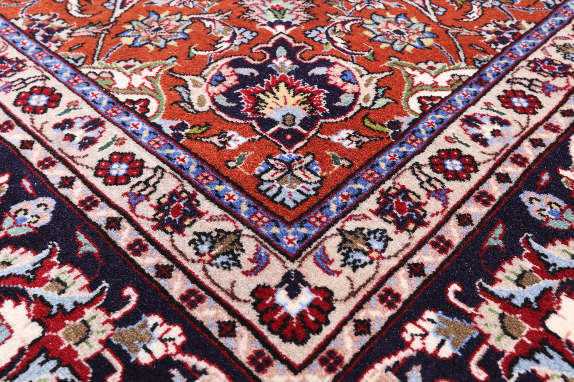 The wool pile for these rugs are amongst the best in Iran, the wool is soft and the pile is tight and thin. Mashhad rugs have curvilinear patterns with single centralized medallions, the corners generally illustrate floral motifs which also occupy most of the background. The main colors for these rugs are dark red, blue, and khaki.