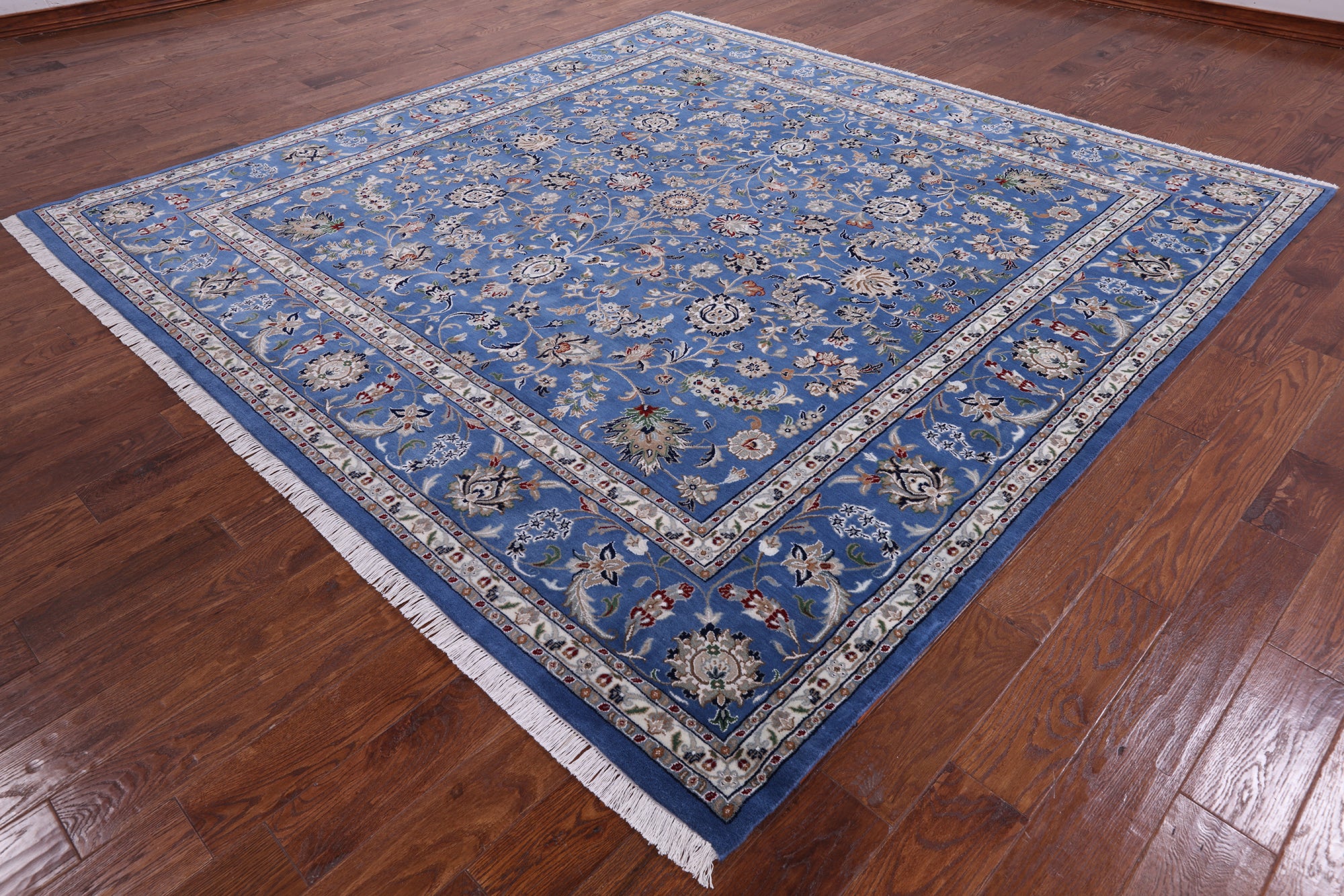 Blue Square Persian Nain Hand Knotted Wool & Silk Rug - 9' 0" X 9' 0"