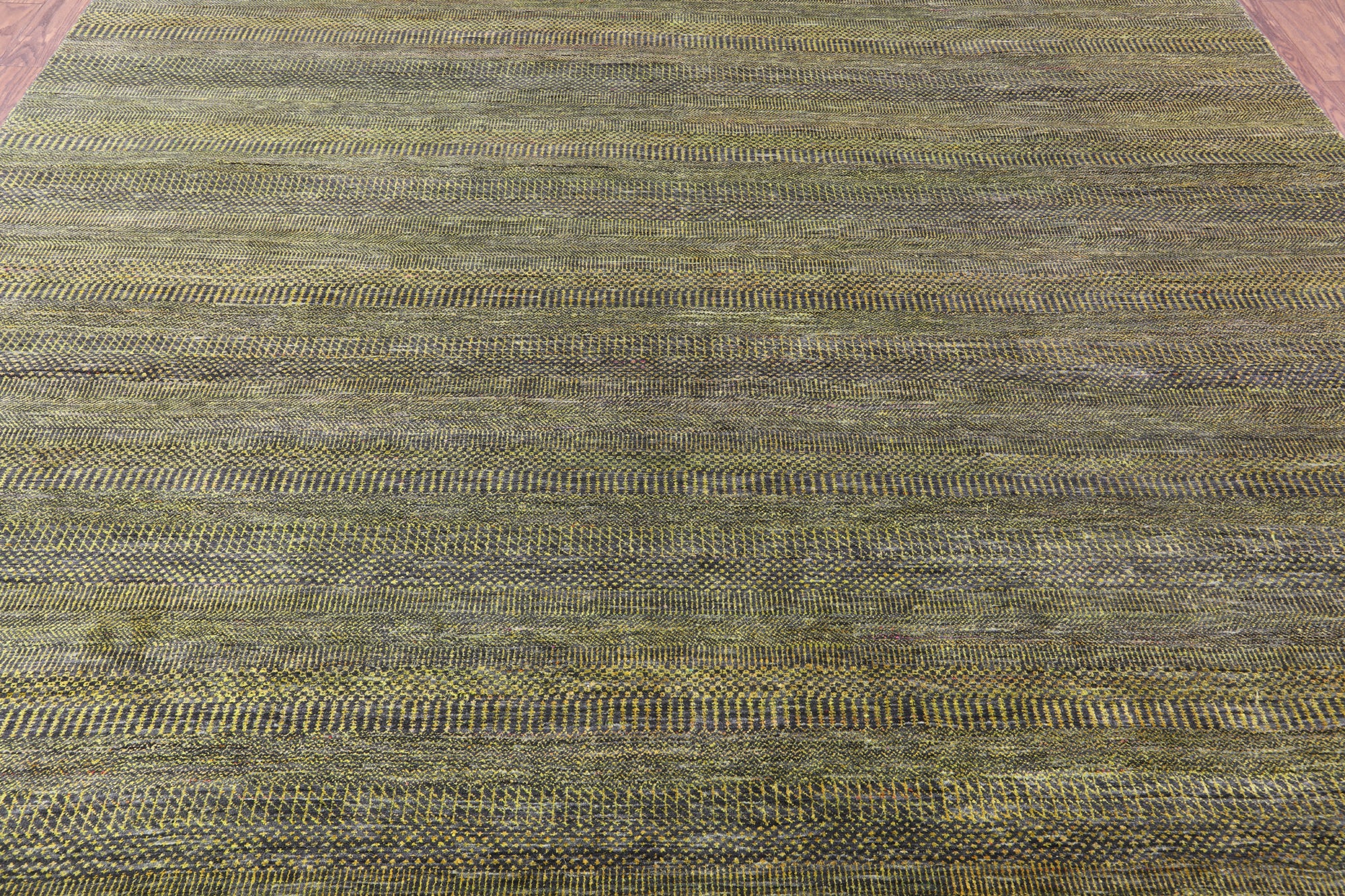 Gold Square Savannah Grass Hand Knotted Wool & Silk Rug - 9' 11" X 10' 2"