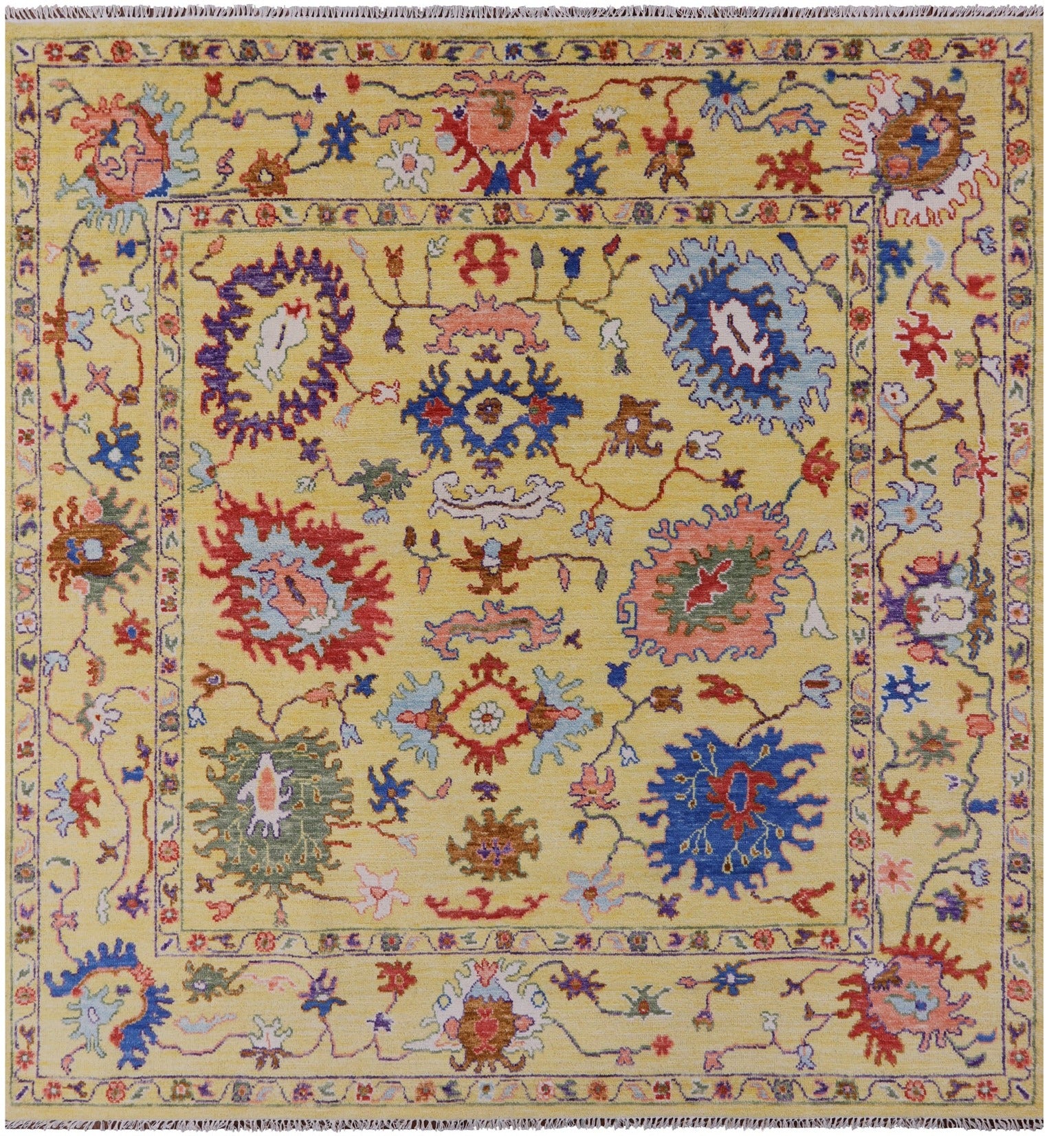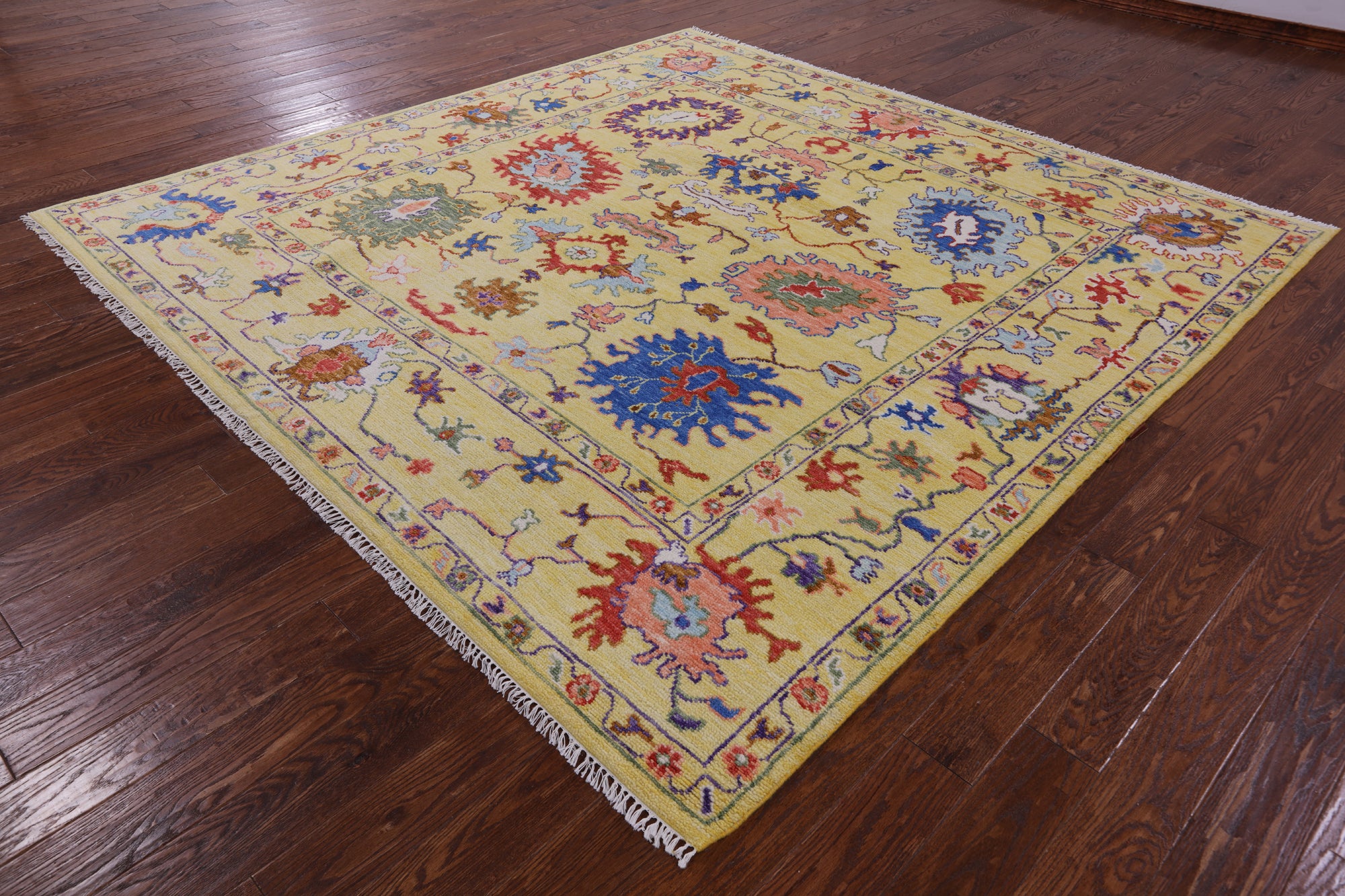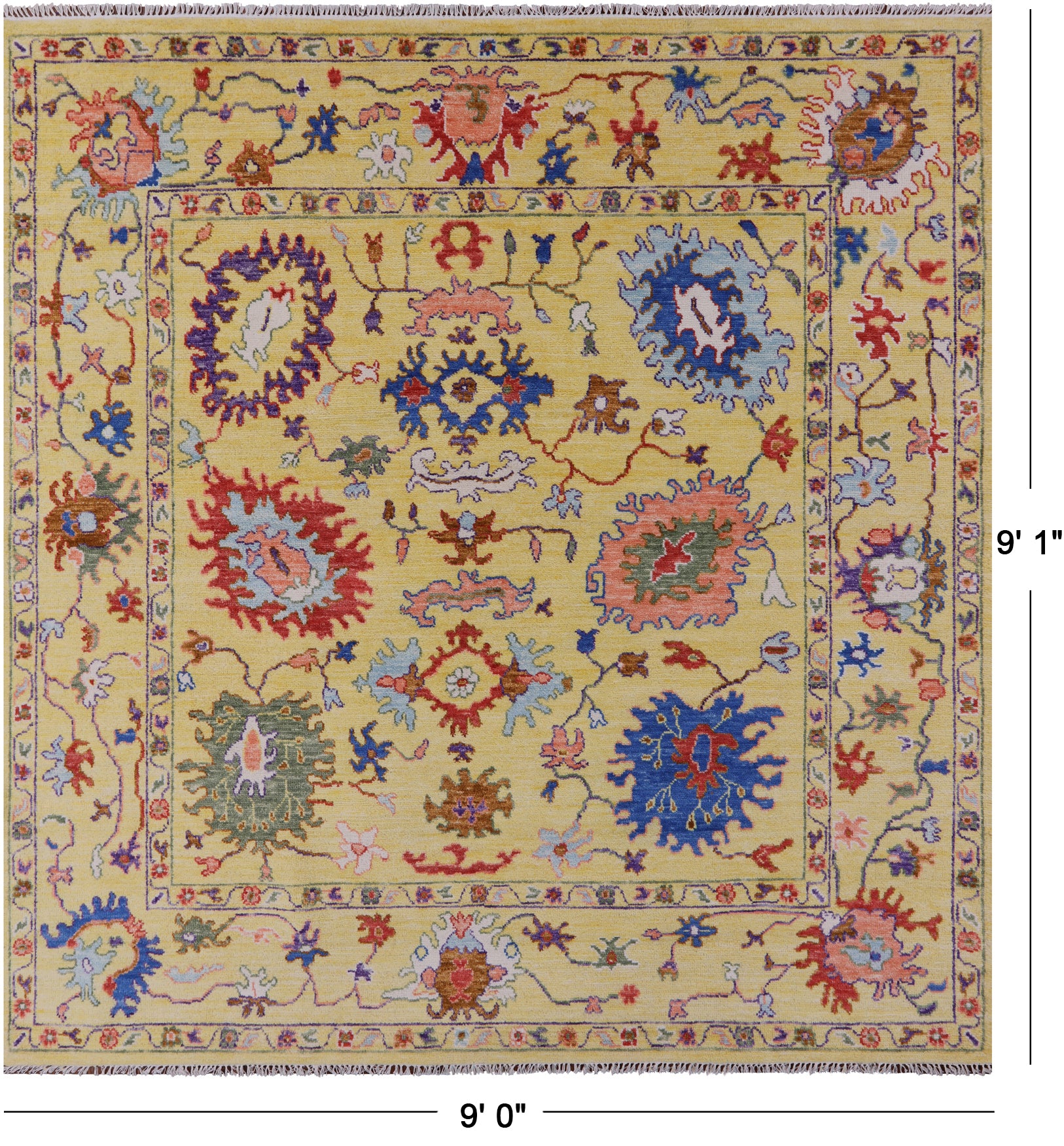 Gold Square Turkish Oushak Hand Knotted Wool Rug - 9' 0" X 9' 1"