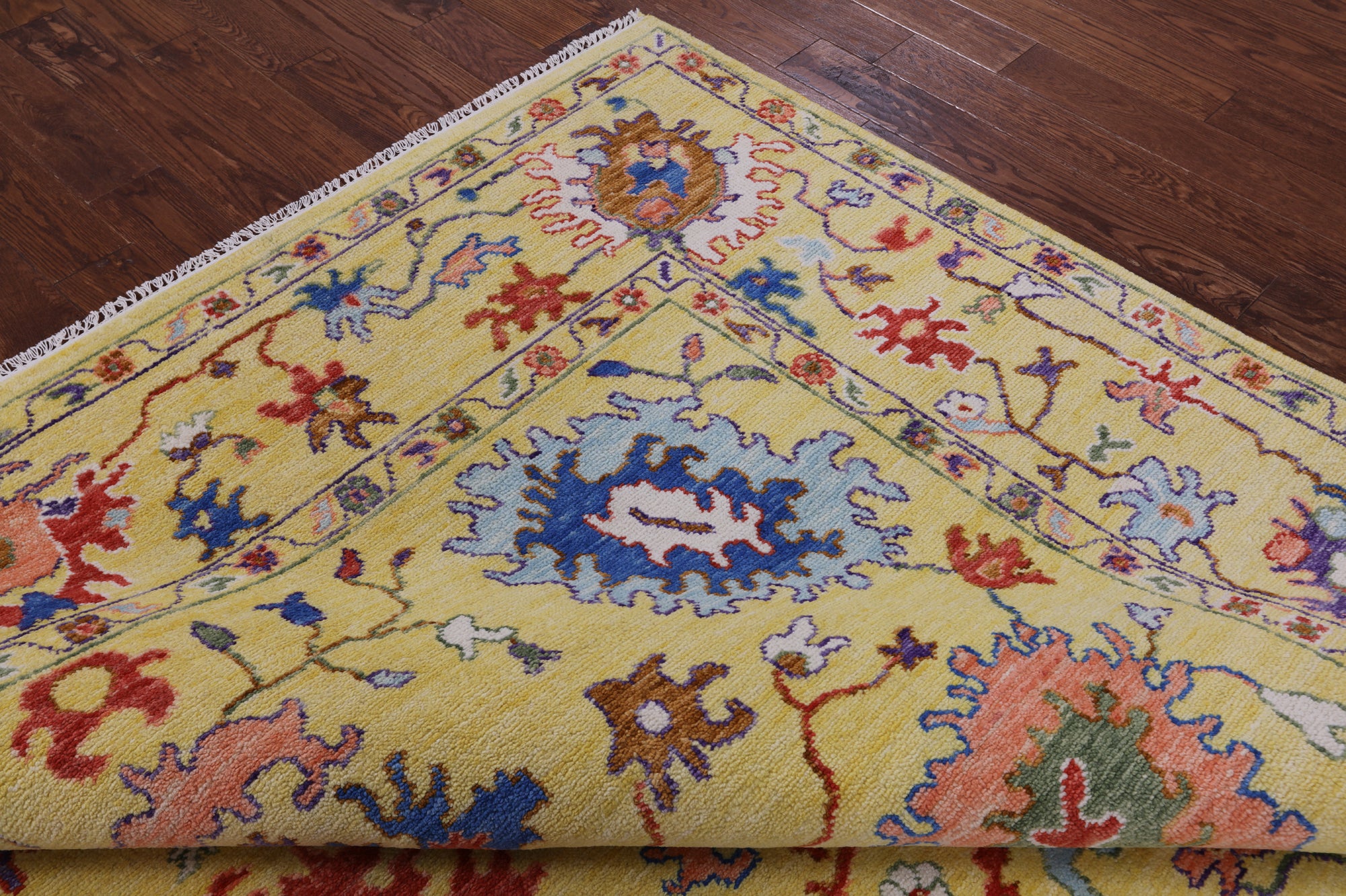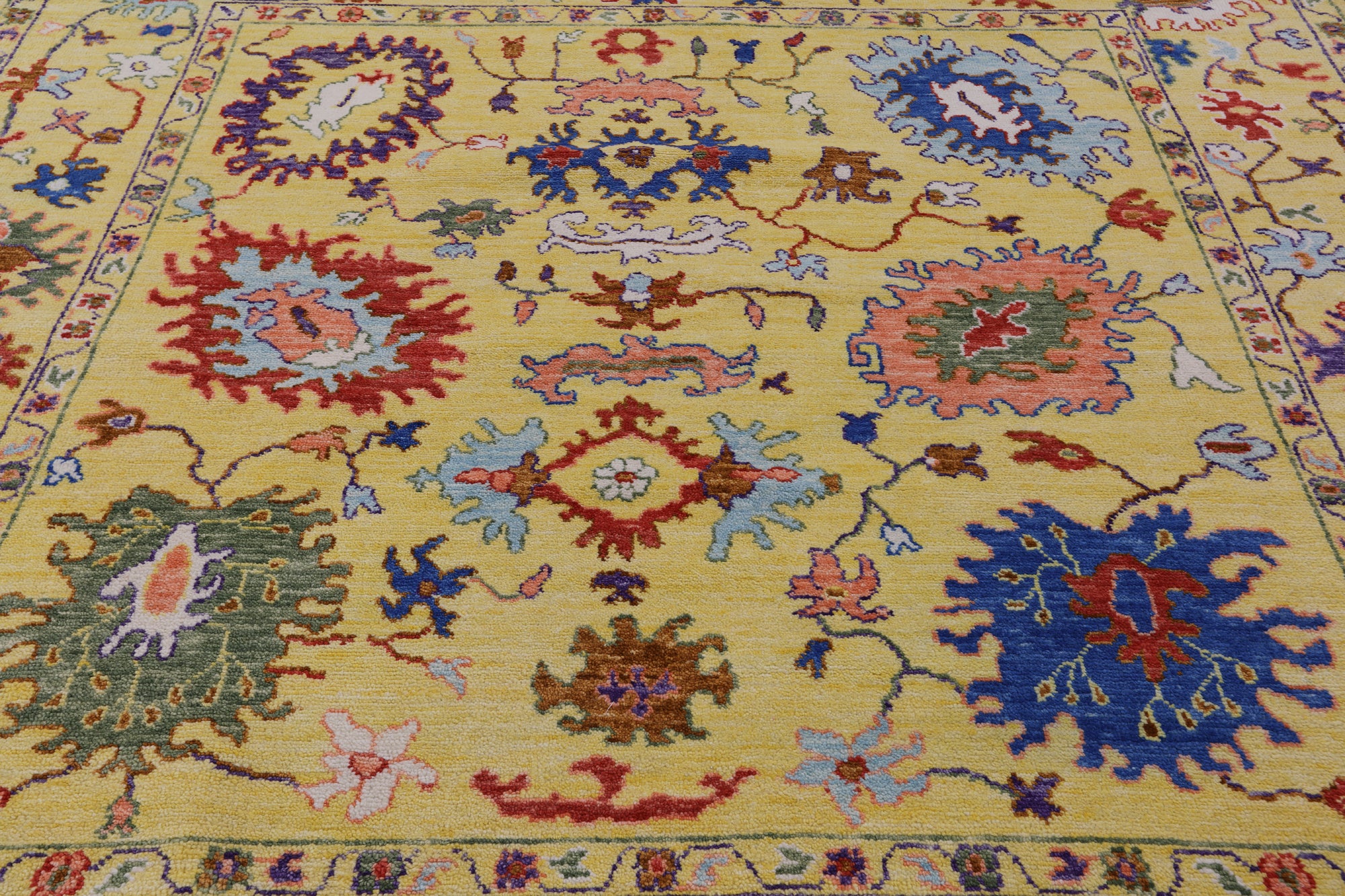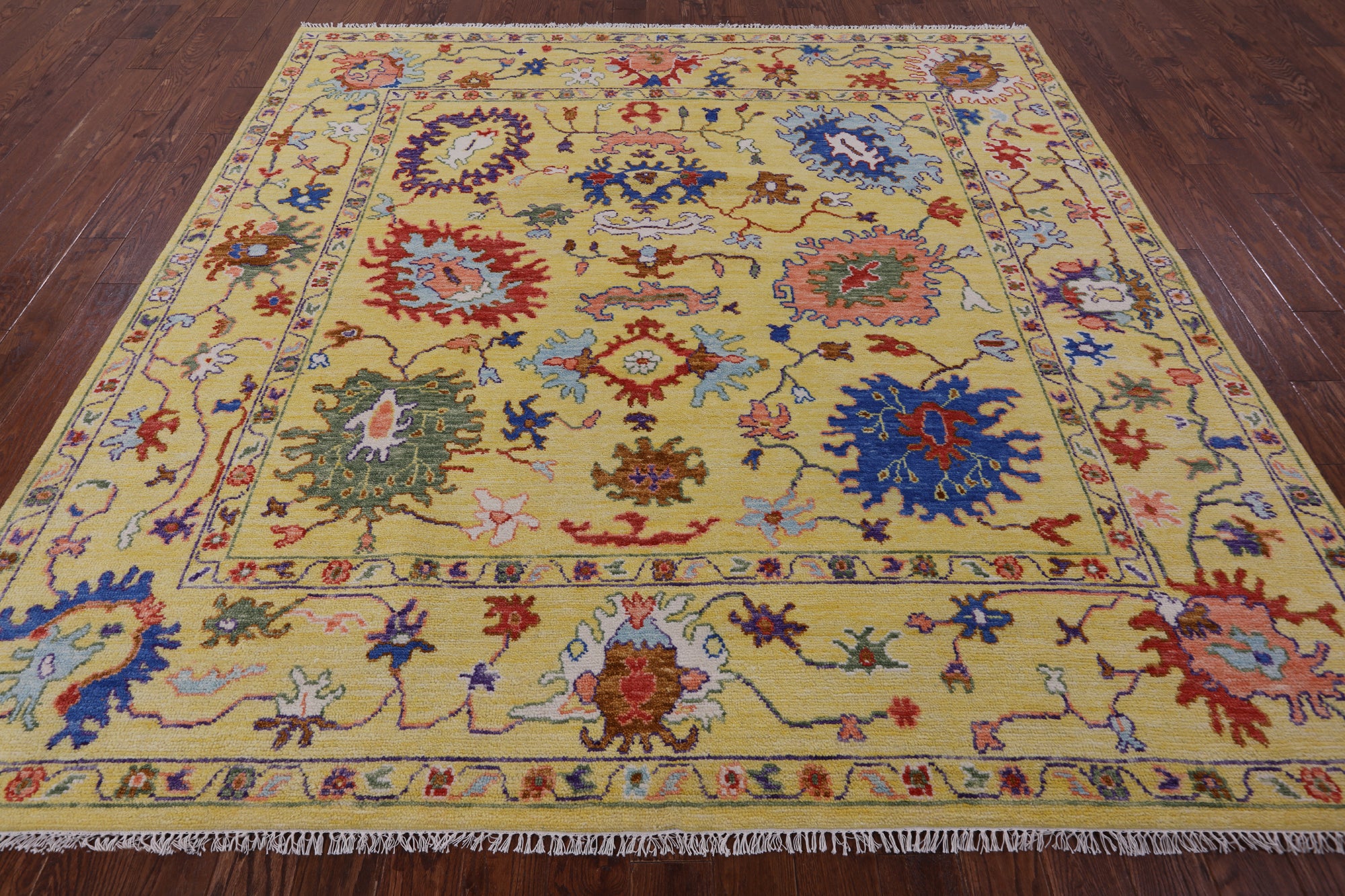 Gold Square Turkish Oushak Hand Knotted Wool Rug - 9' 0" X 9' 1"