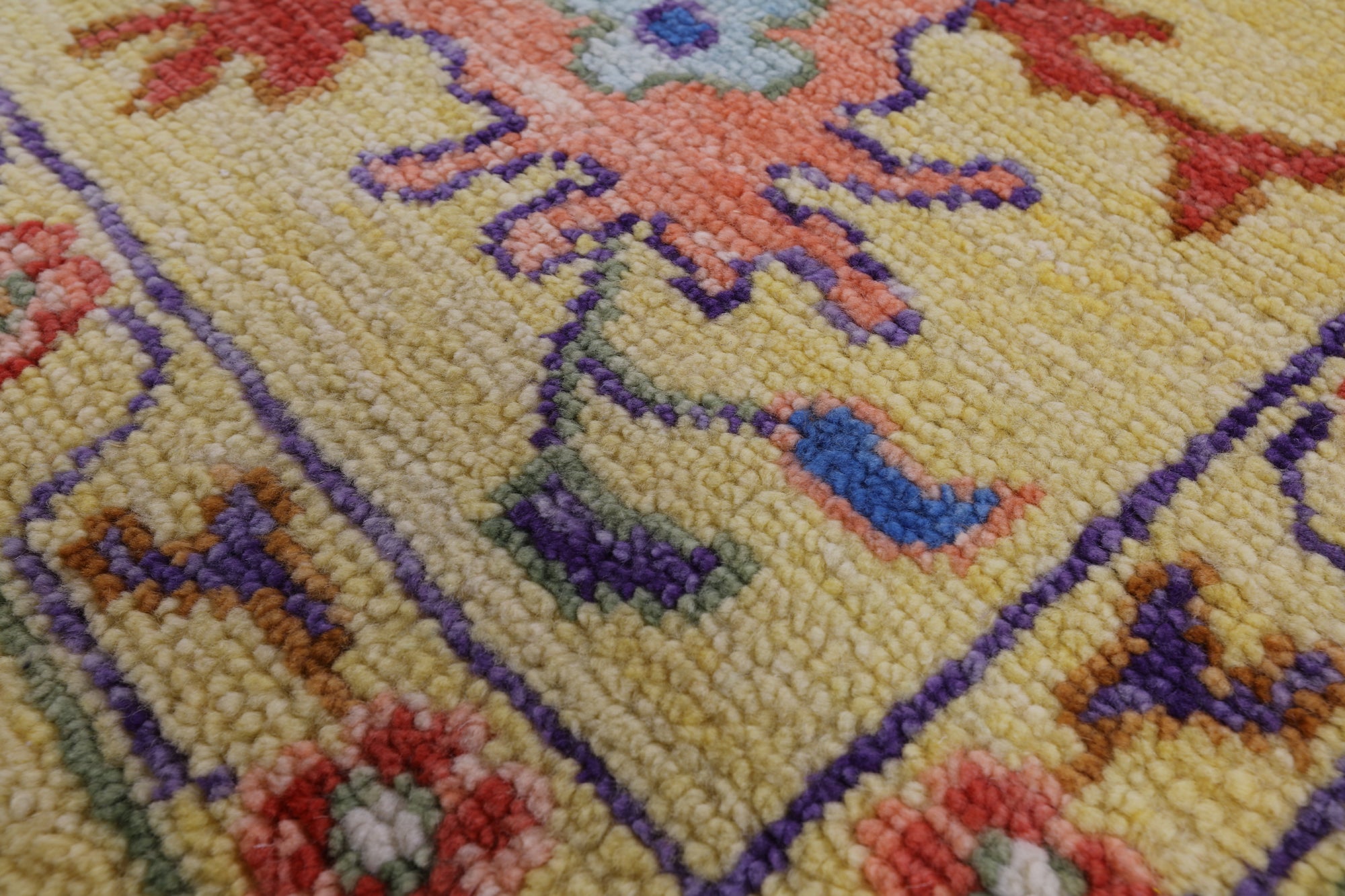Oushak Rugs are distinctive in both pattern and color palette. Most have a blue, green, dark ivory, or gold & their designs are typically based on geometric motifs and vine / leave motifs. All colors are created with natural vegetable dyes, and the hushed tones are enhanced by the soft, lustrous wool texture. The foundation of an Oushak is cotton while the pile is wool. Oushak rugs are also double-knotted for durability.