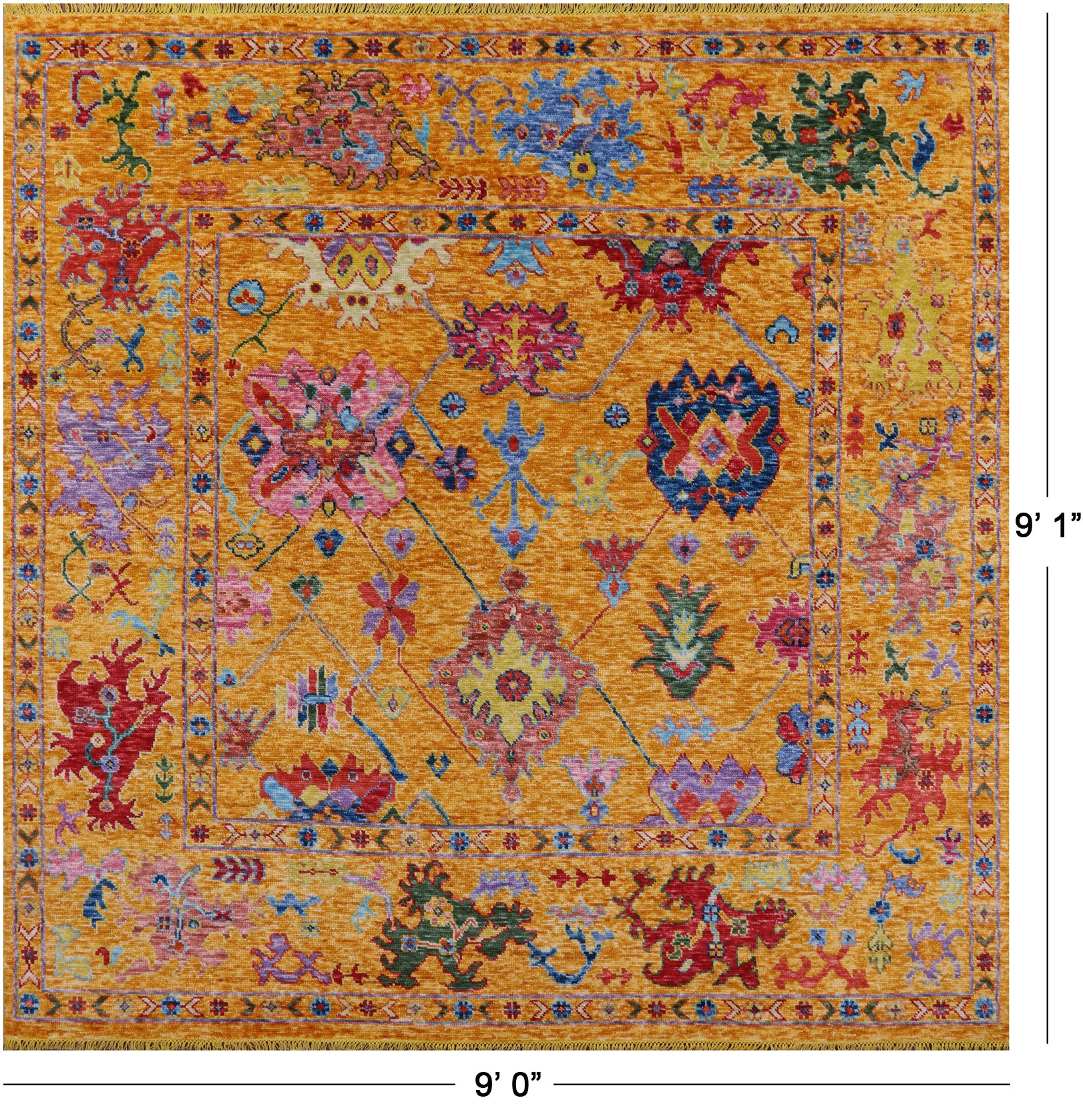 Gold Square Turkish Oushak Hand Knotted Wool Rug - 9' 0" X 9' 1"
