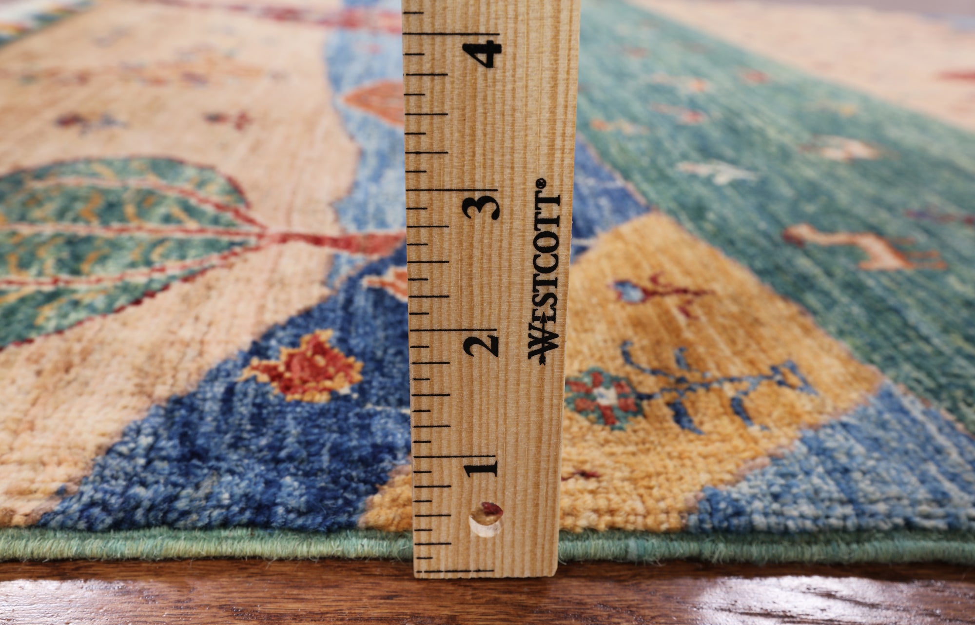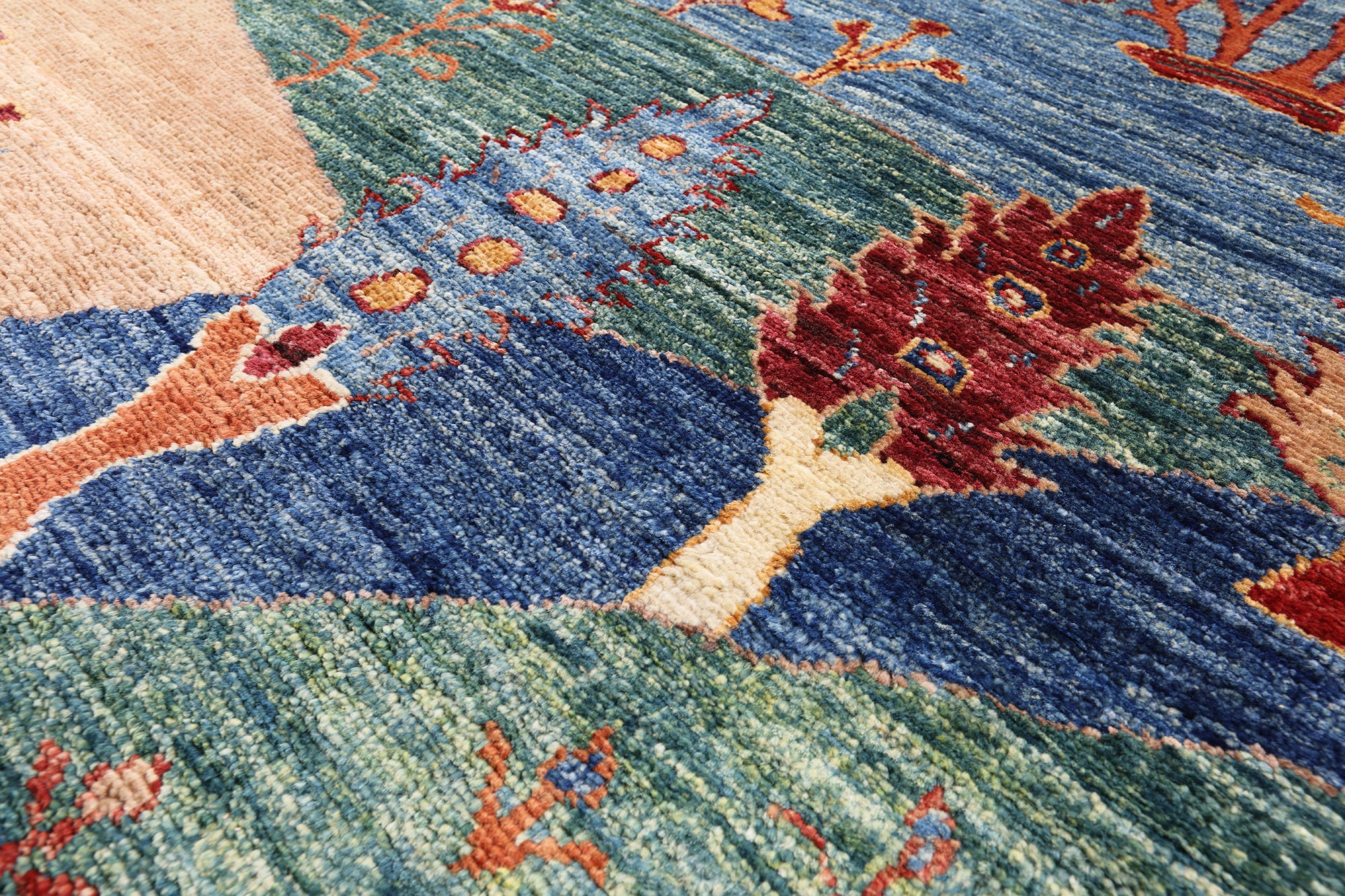 Gabbeh Rugs feature hand-spun wool in both the pile and foundation. These rugs are characterized by their abstract designs that relies upon open fields of color and a playfulness with geometric figures used to depict a story, person, or event. Gabbeh Rugs are popular in a contemporary or modern setting and are extremely durable, usually small to medium size.