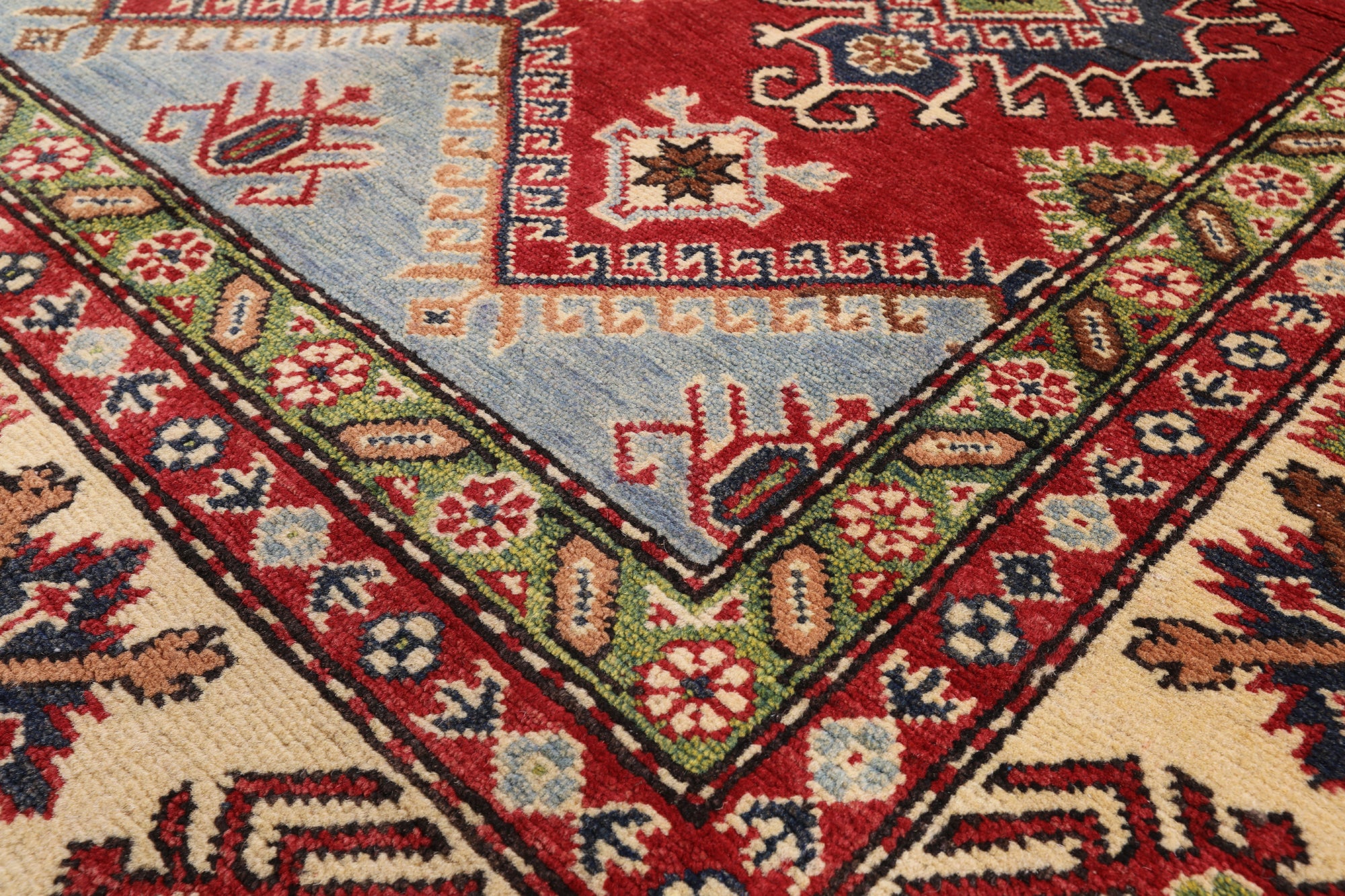Kazak Rugs are popular for their stunning geometric designs & high quality dyes. Kazak patterns tend to be red, yellow/gold and blue. Designs include, but are not limited to animals, flowers, medallions, & iconic figures such as geometric people/ and animals & symbolic motifs.