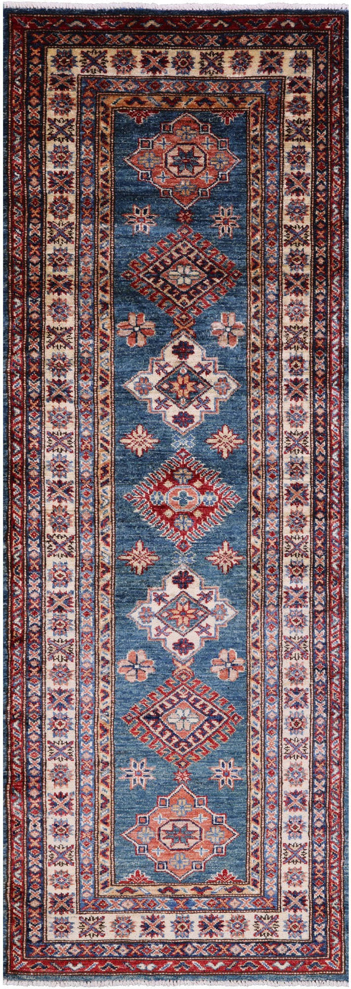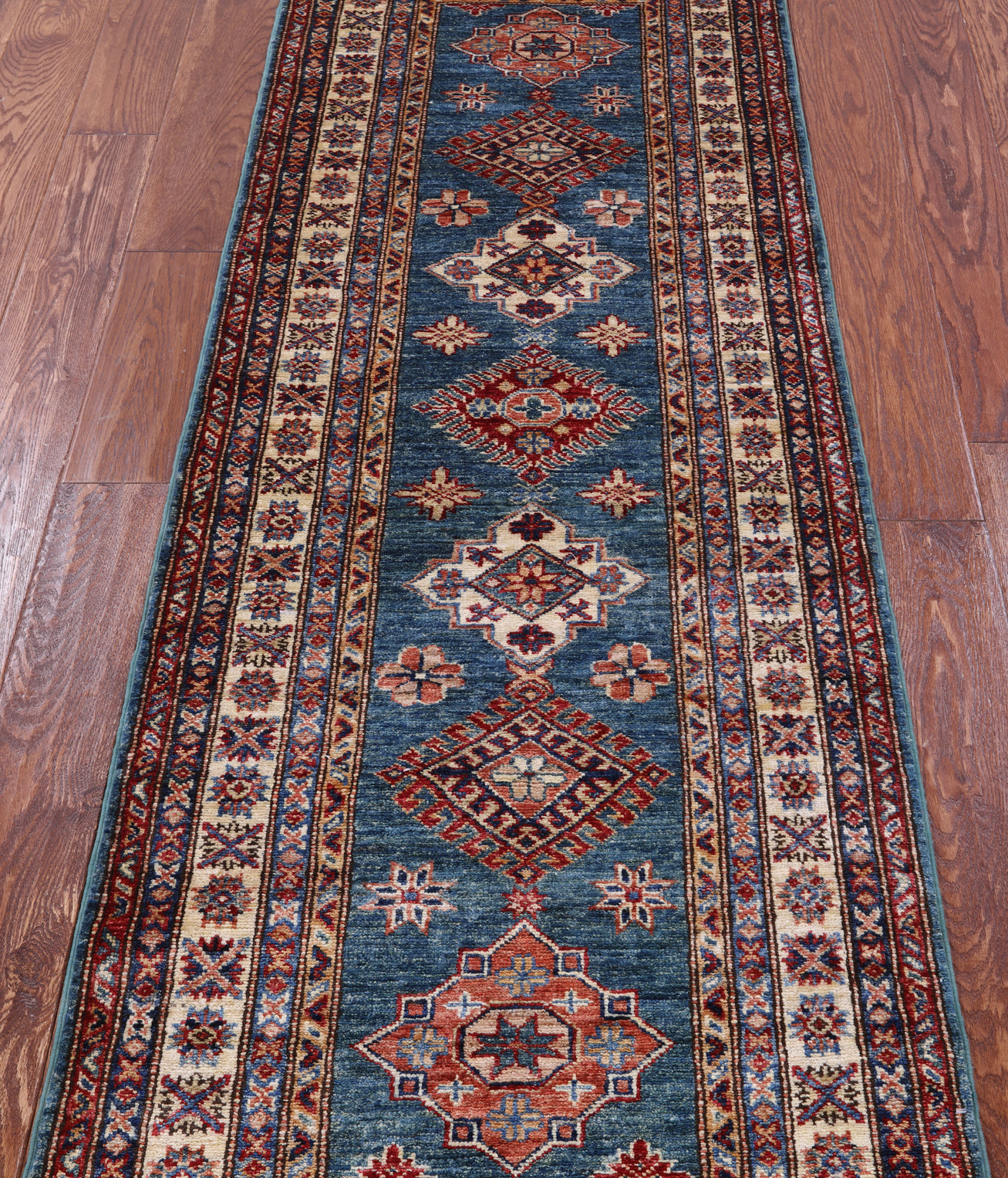 Kazak Rugs are popular for their stunning geometric designs & high quality dyes. Kazak patterns tend to be red, yellow/gold and blue. Designs include, but are not limited to animals, flowers, medallions, & iconic figures such as geometric people/ and animals & symbolic motifs.
