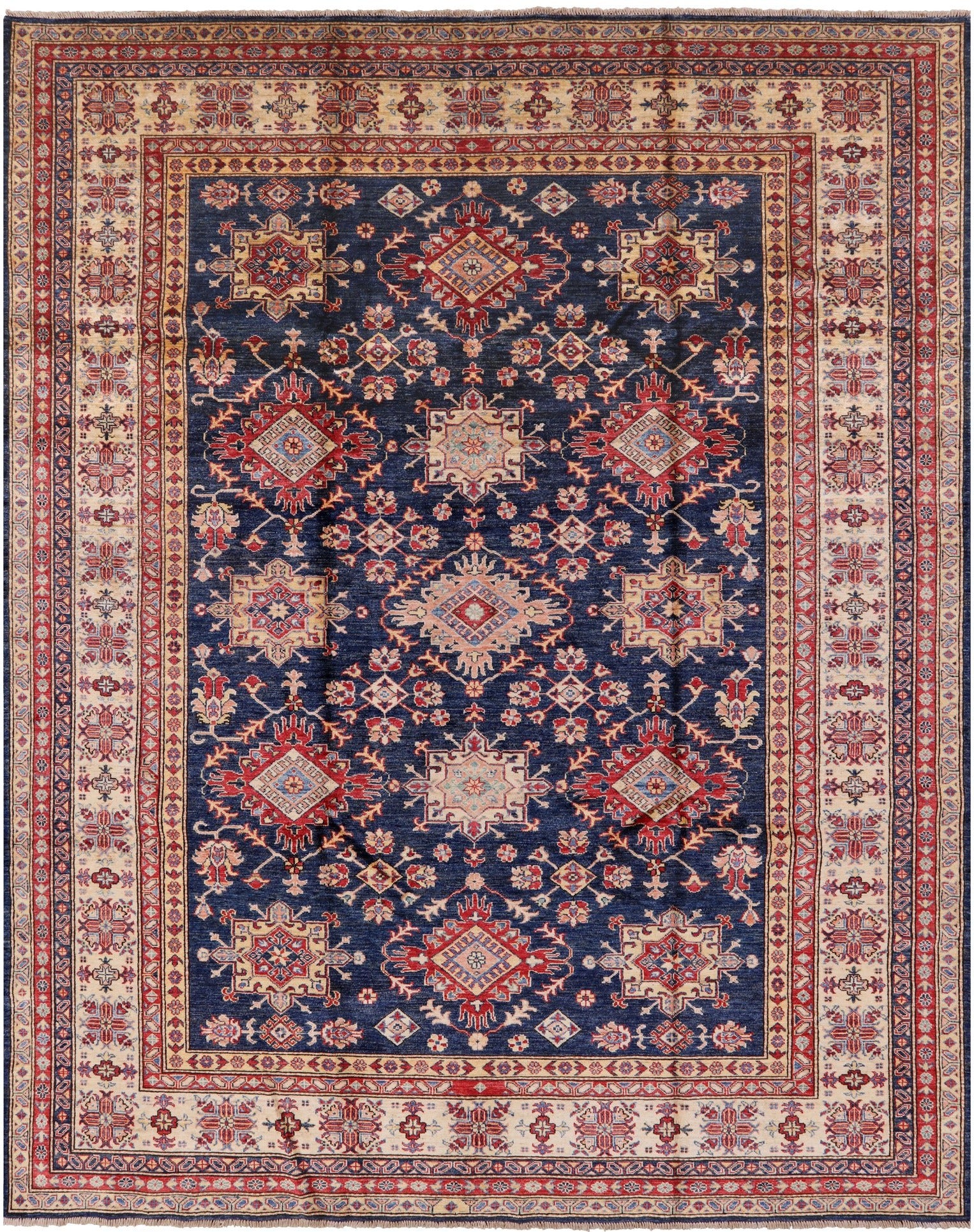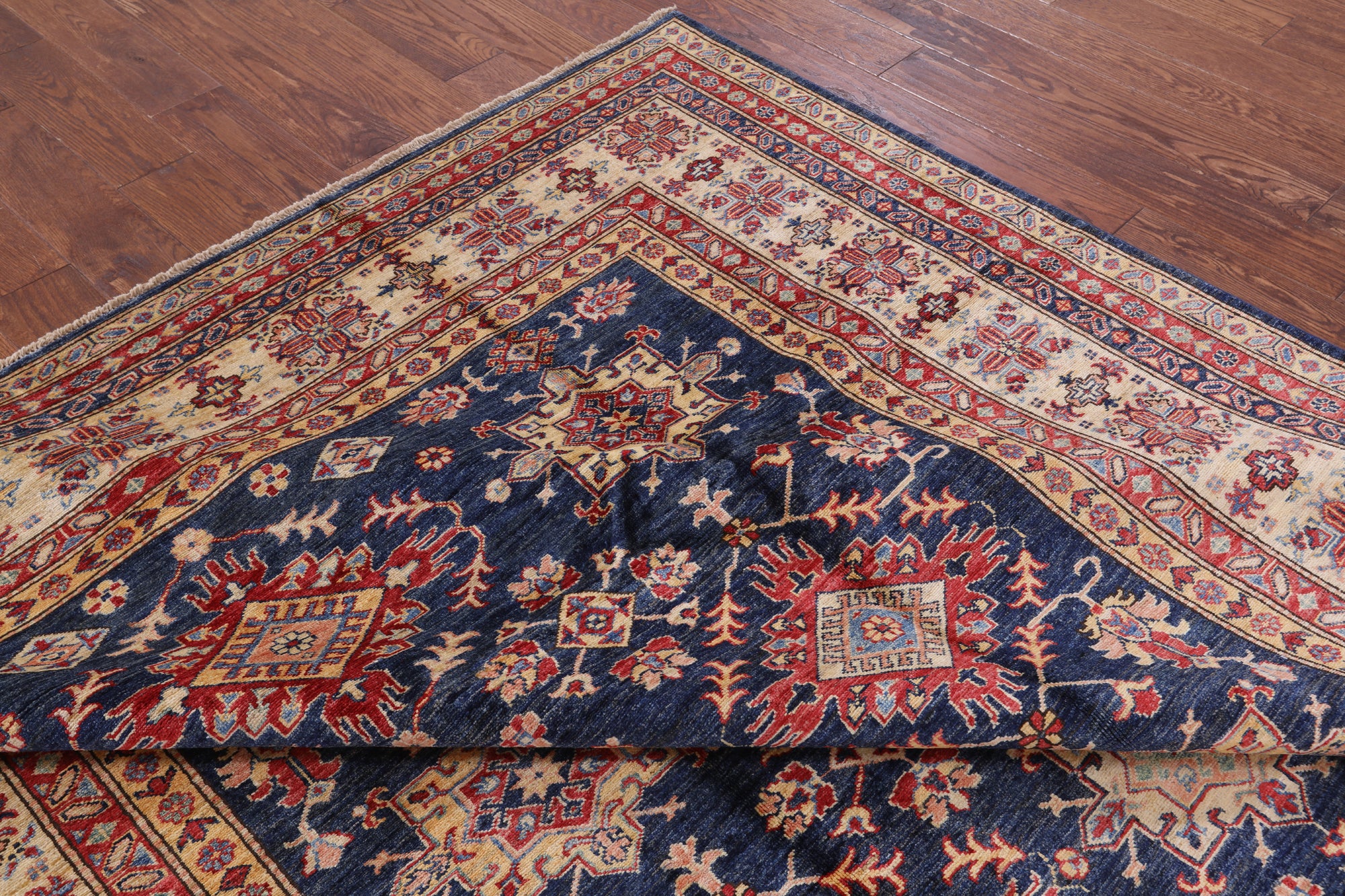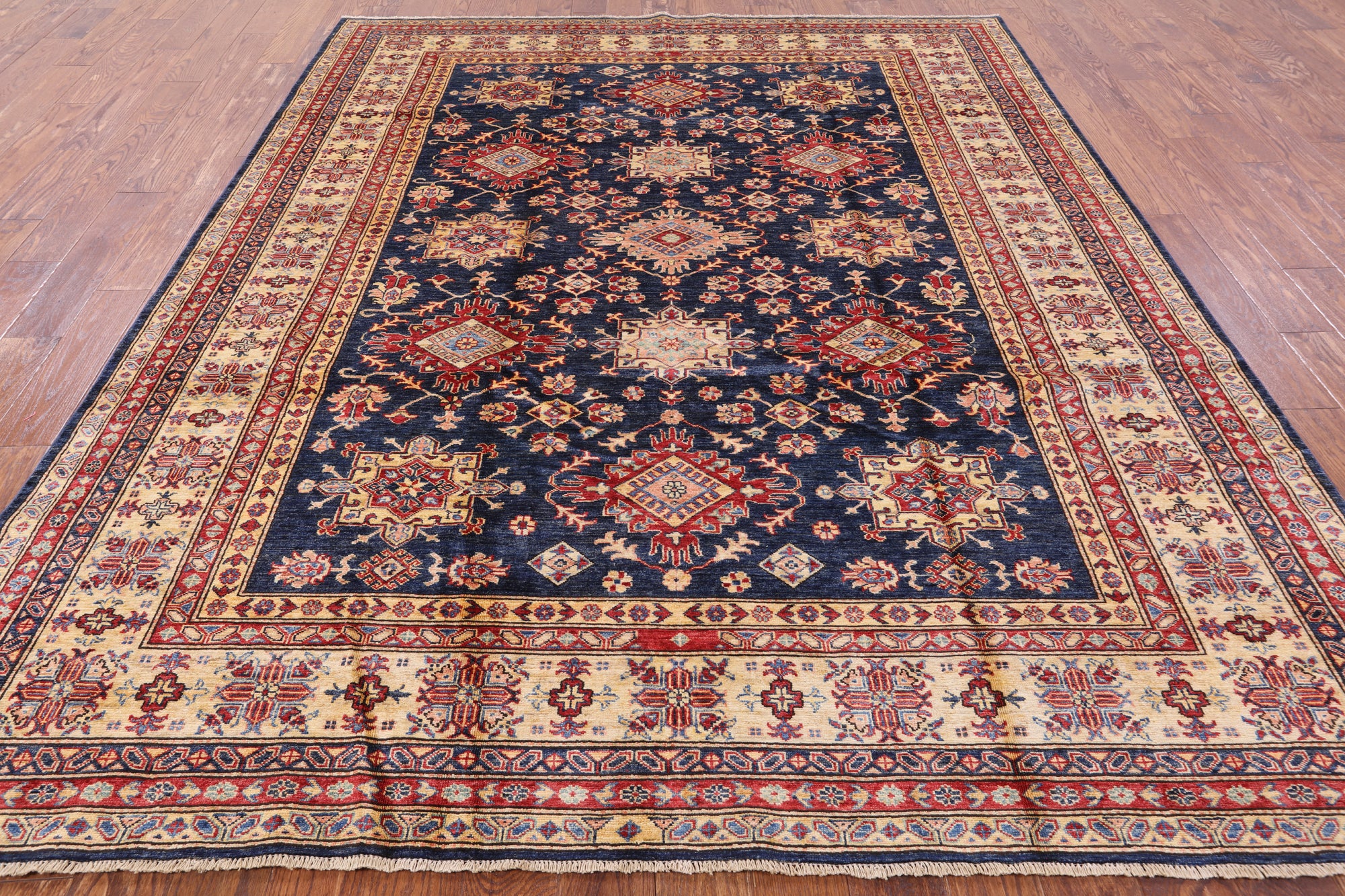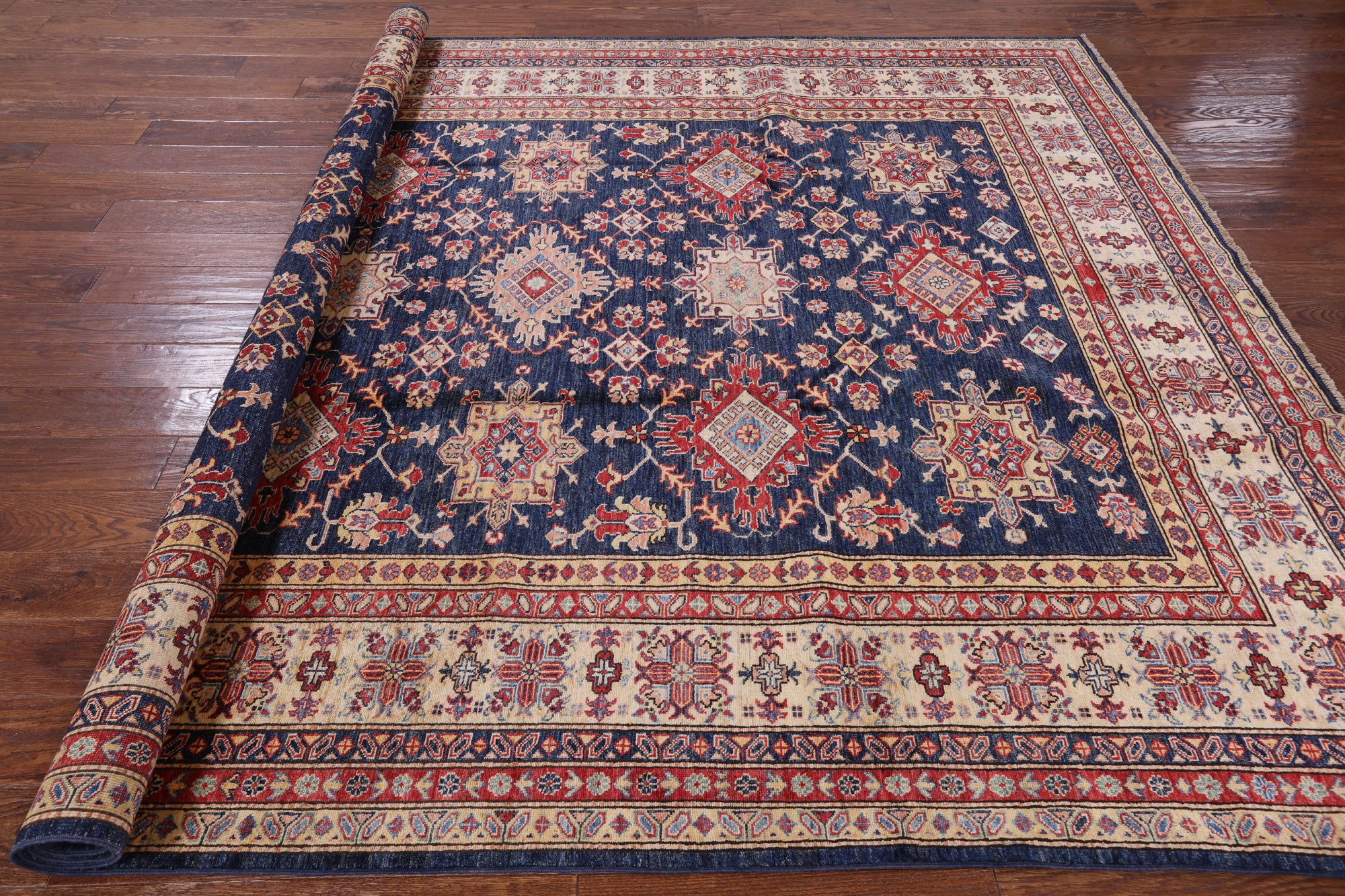 Blue Super Kazak Handmade Wool Rug - 8' 0" X 9' 10"